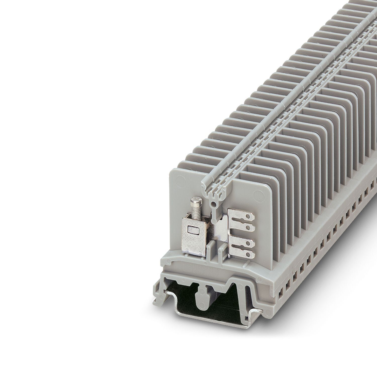 Проходные клеммы, номинальное напряжение: 800 В, номинальный ток: 32 A, 1. ярус, подключение слева, тип подключения: Винтовые зажимы, Расчетное сечение: 4 мм2, cечение: 0,2 мм2 - 4 мм2, тип подключения: Подкл. плоского штекера, монтаж: NS 35/7,5, NS 35/15, цвет: cерый