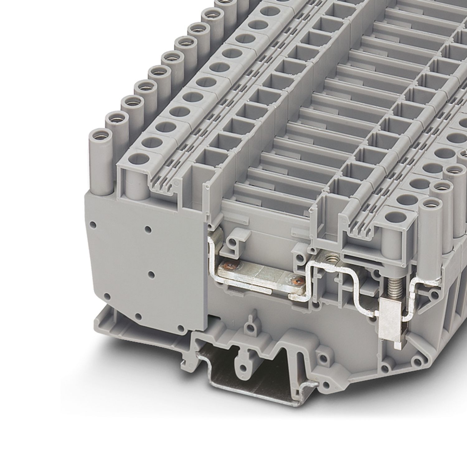Контрольные гнезда с защитой от прикосновений и диаметром 4 мм предустановлены|Клеммы могут оснащаться жесткими и коммутируемыми перемычками с обеих сторон