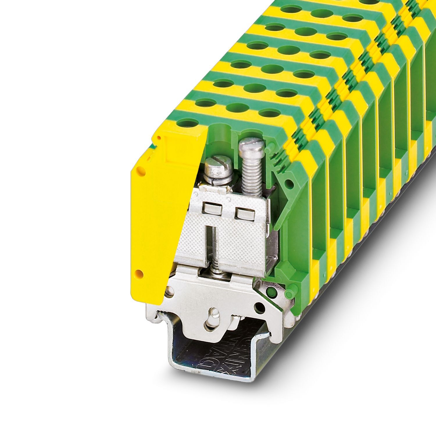 Заземляющая клемма, Для подсоединения проводников >= 35 мм2 / AWG 2 необходимо использовать медную монтажную рейку NS 35/15-2,3! При монтаже проходных клемм в ряд при напряжении изоляции > 690 В необходимо установить крышку, количество точек подсоединения: 2, полюсов: 1, тип подключения: Винтовые зажимы, cечение: 0,75 мм2 - 50 мм2, тип крепления: Основание из полиэтилена с крепежным винтом, M5, тип монтажа: NS 35/15-2,3, цвет: желто-зел.