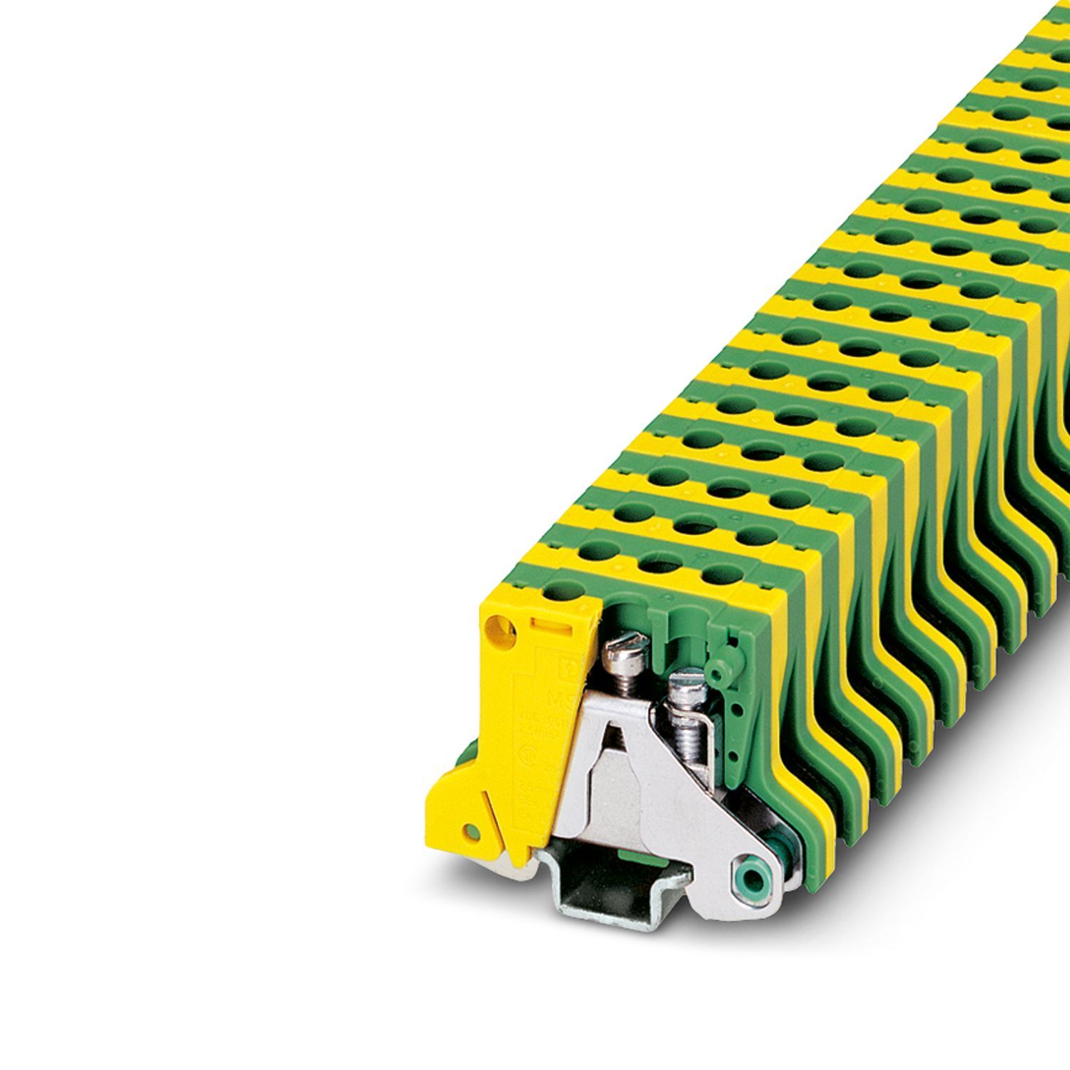 Заземляющая клемма, При монтаже проходных клемм в ряд при напряжении изоляции > 250 В необходимо установить разделительную перегородку, количество точек подсоединения: 2, тип подключения: Винтовые зажимы, 1. ярус, cечение: 0,2 мм2 - 4 мм2, тип крепления: Основание из полиэтилена с крепежным винтом, M2,5, тип монтажа: NS 15, цвет: желто-зел.