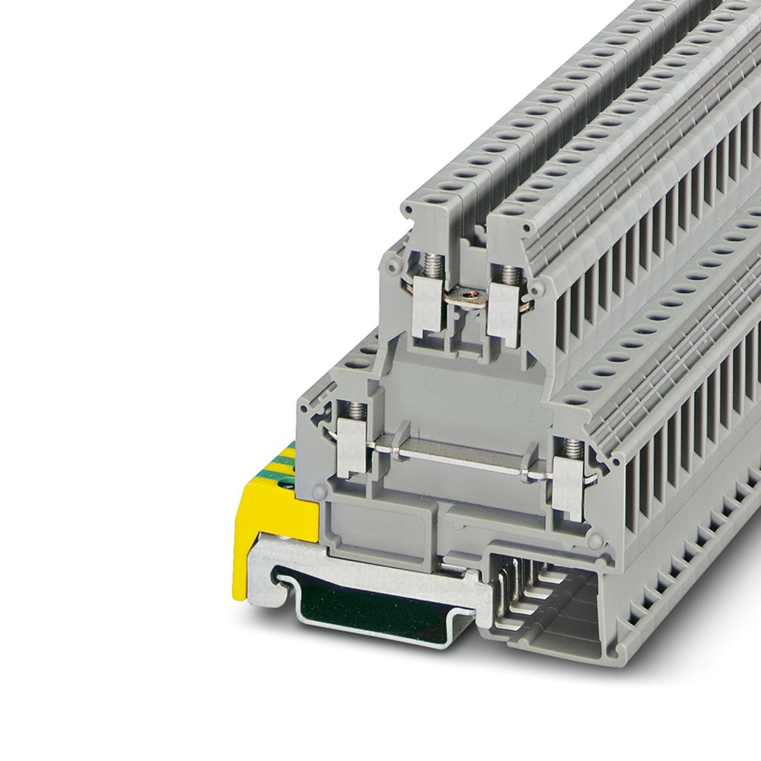 Двухъярусные клеммы, номинальное напряжение: 500 В, номинальный ток: 30 A, тип подключения: Винтовые зажимы, 1. и 2-ий ярус, Расчетное сечение: 4 мм2, cечение: 0,2 мм2 - 4 мм2, тип монтажа: NS 35/7,5, NS 35/15, цвет: cерый