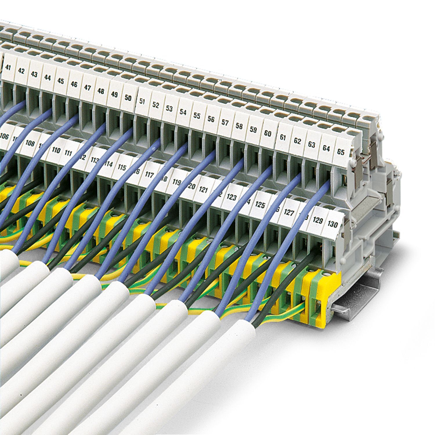 С помощью перемычки FBI 10-6 можно объединять выводы верхнего яруса для соединения между собой свободных выводов световых индикаторов или для объединения внешних цепей в одну общую цепь|Особенно подходят для применения в устройствах управления с внешними сервоприводами, магнитными клапанами и концевыми выключателями|С двумя смещенными в сторону проходными ярусами и разъемом для заземляющего провода с возможностью подключения к несущей рейке, выполняющей функцию магистральной шины РЕ|Это обеспечивает возможность компактной и систематической разводки трехжильных проводов