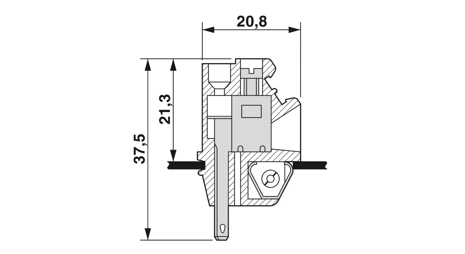 Проходные зажимы, тип подключения: Винтовой зажим с натяжной гильзой, Контакты под пайку / разъем для подключения плоского штекера, полюсов: 1, ток нагрузки: 18 A, cечение: 0,2 мм2 - 4 мм2, yгол между направлениями подключения провода и установки разъема: 90 °, ширина: 6 мм, цвет: серый