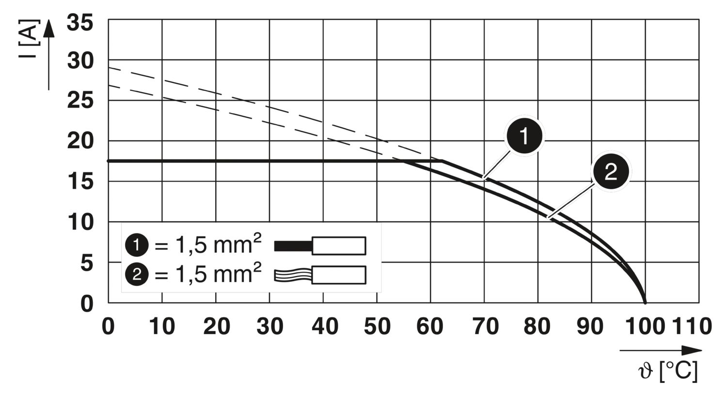 -40 °C ... 100 °C (В зависимости от кривой тока нагрузки по току/изменения характеристик)