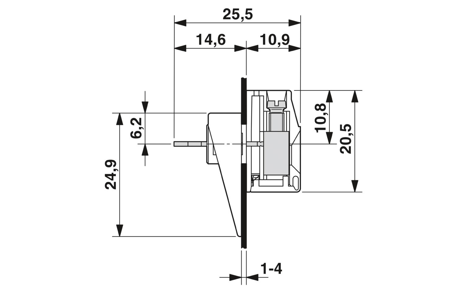 Проходные зажимы, тип подключения: Винтовой зажим с натяжной гильзой, Подключение пайкой, полюсов: 1, ток нагрузки: 32 A, cечение: 0,2 мм2 - 6 мм2, yгол между направлениями подключения провода и установки разъема: 0 °, ширина: 10 мм, цвет: серый