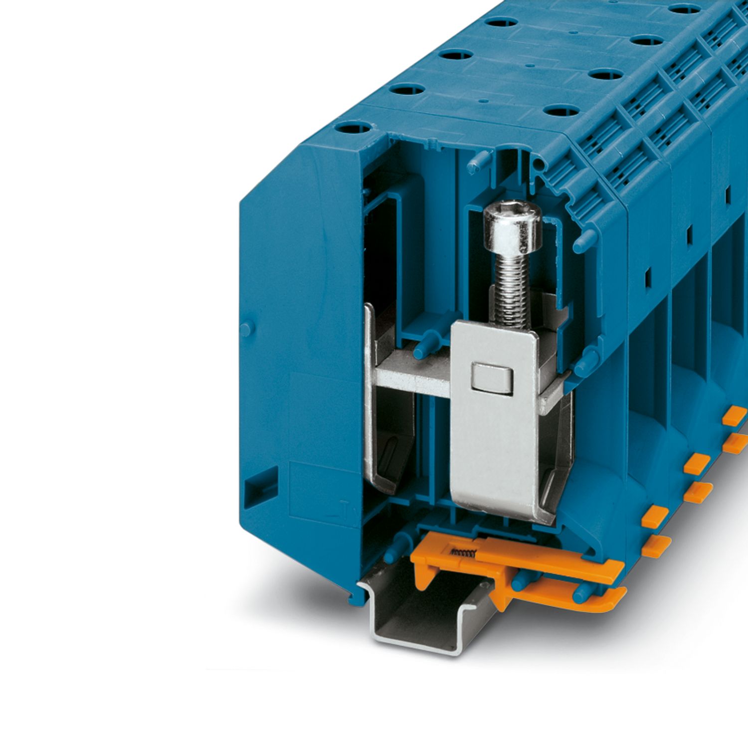 Cиловая клемма, номинальное напряжение: 1000 В, номинальный ток: 415 A, количество точек подсоединения: 2, полюсов: 1, тип подключения: Винтовые зажимы, Расчетное сечение: 240 мм2, cечение: 70 мм2 - 240 мм2, тип монтажа: NS 35/15, NS 32, цвет: синий