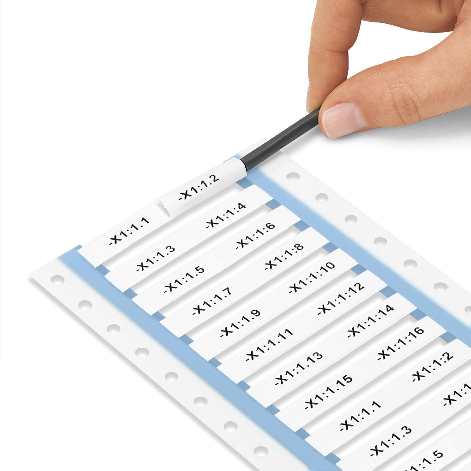 Длительная и постоянная маркировка одножильных кабелей, проводников, кабелей, пневматических шлангов и других цилиндрических поверхностей|Конструкция в виде лестницы: Для хорошего обзора и быстрого использования шланги предварительно собраны в секции длиной: 15 мм, 30 мм или 60 мм|Чтобы зафиксировать положение, дополнительно имеется возможность усадки при помощи любого метода тепловой обработки|Большой диапазон охвата диаметров за счет коэффициента усадки 3:1|Широкое распространение в производстве шкафов управления, машиностроении, нефтяной и газовой отрасли, а также железнодорожной промышленности по всему миру