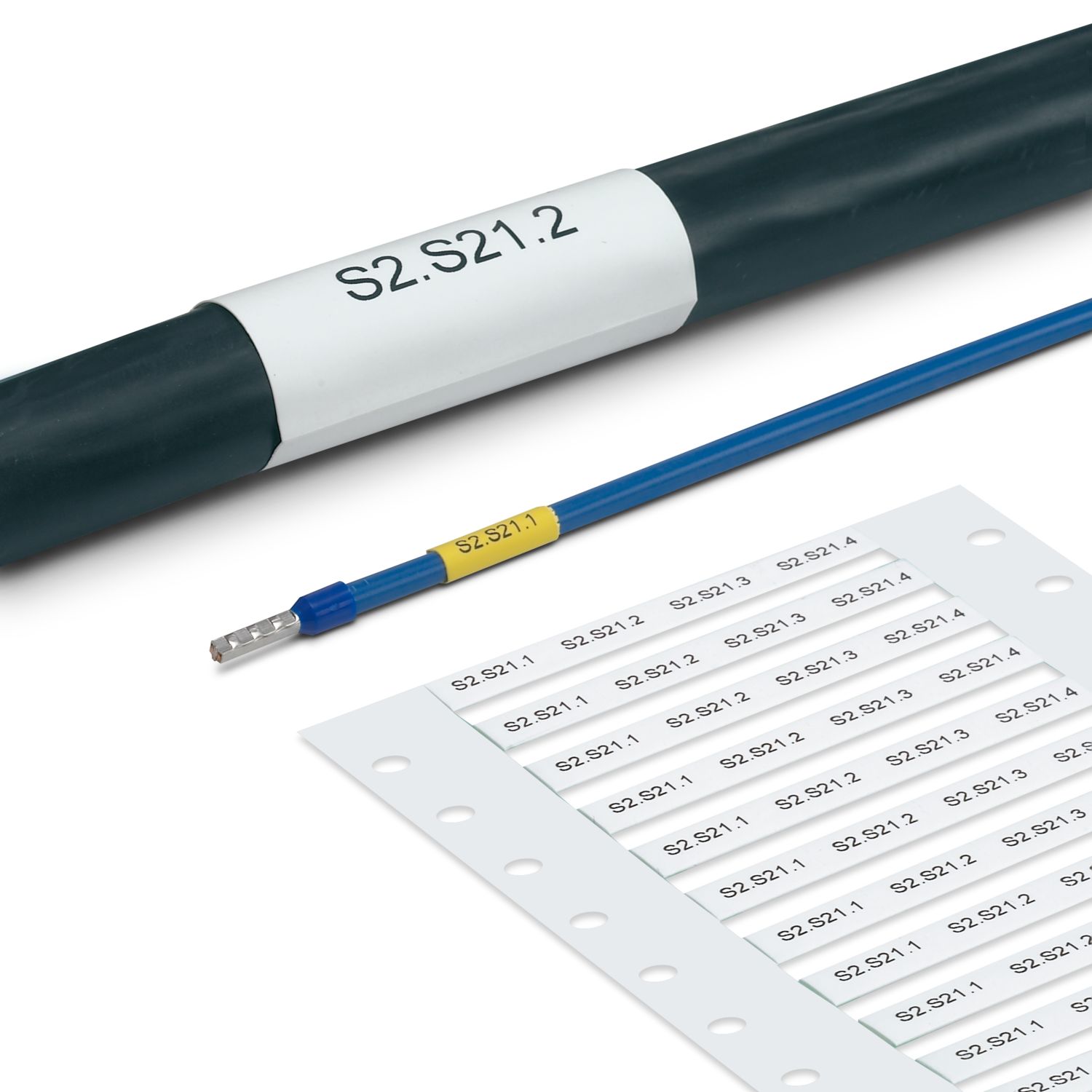 Длительная и постоянная маркировка одножильных кабелей, проводников, кабелей, пневматических шлангов и других цилиндрических поверхностей|Конструкция в виде лестницы: Для хорошего обзора и быстрого использования шланги предварительно собраны в секции длиной: 15 мм, 30 мм или 60 мм|Чтобы зафиксировать положение, дополнительно имеется возможность усадки при помощи любого метода тепловой обработки|Большой диапазон охвата диаметров за счет коэффициента усадки 3:1|Широкое распространение в производстве шкафов управления, машиностроении, нефтяной и газовой отрасли, а также железнодорожной промышленности по всему миру