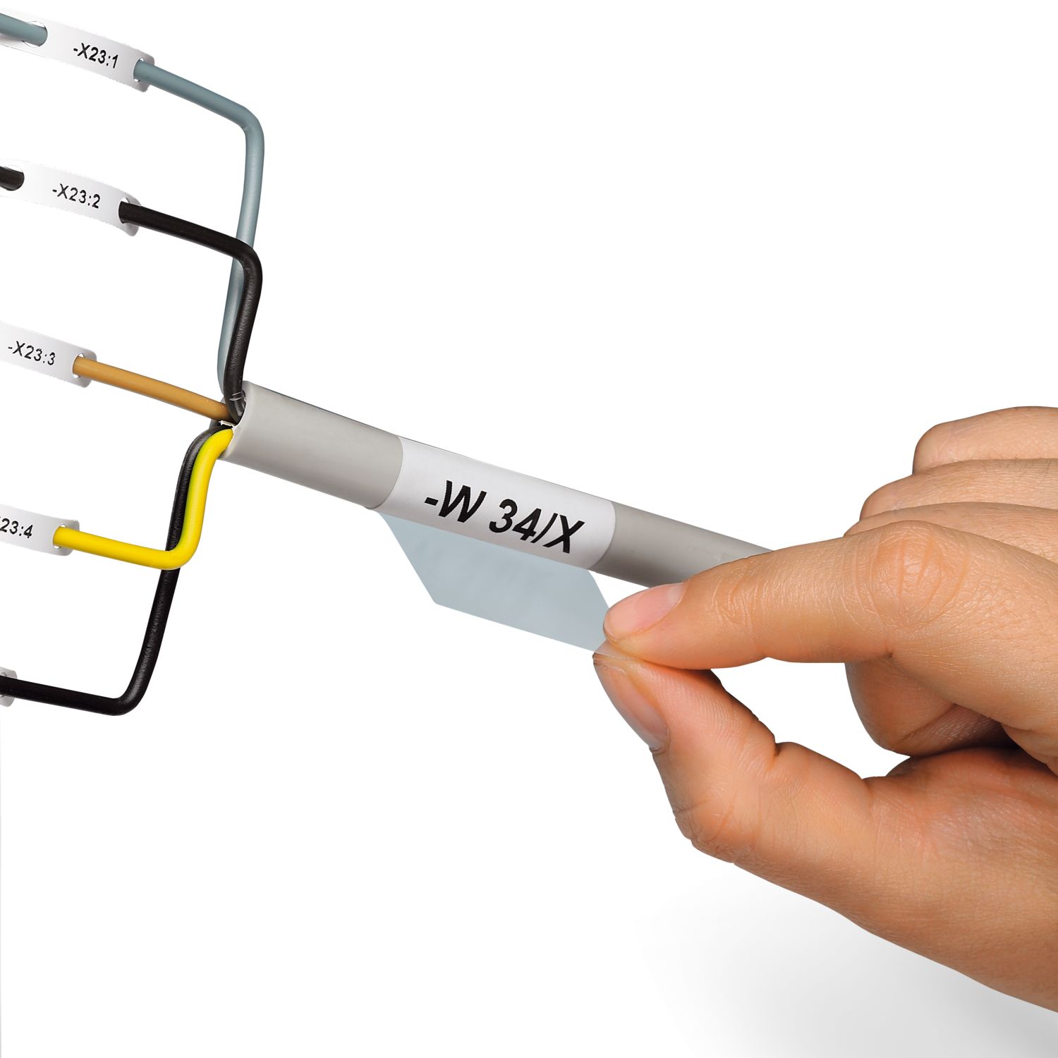 Этикетки не увеличивают поперечное сечение кабеля, поэтому кабели могут свободно прокладываться, например, в кабельных каналах|Быстрое и простое использование|Устойчивы к воздействию растворителей|Защитная пленка оборачивается вокруг нанесенной маркировки и обеспечивает надежную защиту от загрязнения и истирания|Этикетки для маркировки кабелей US-WML ... состоят из таблички для нанесения надписей и прозрачной защитной пленки