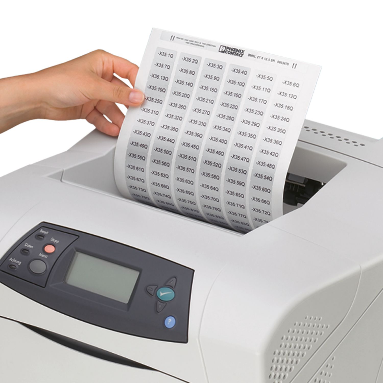 Эти этикетки разработаны специально для лазерного принтера|Нанесение надписей: Phoenix Contact наносит надписи на все маркеры BMKL ...индивидуально по Вашему выбору|Возможность нанесения надписей с помощью любого лазерного принтера|Файл материалов можно скачать при помощи ПО CLIP PROJECT в разделе загрузки - "Software update - Marking"|Для индивидуального оформления этикеток предлагаются нештампованные листы SK-U...