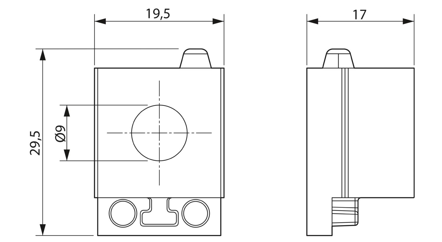 Кабельный сальник, маленький, юоличество проводов: 1, исполнение: Круглый кабель, со шлицами, наружный диаметр проводника: 1x 8 мм ... 9 мм, материал: NBR, цвет: черный, длина: 29,5 мм, ширина: 19,5 мм, высота: 17 мм