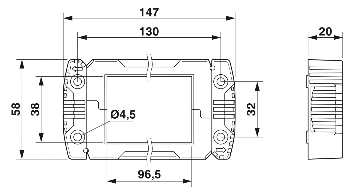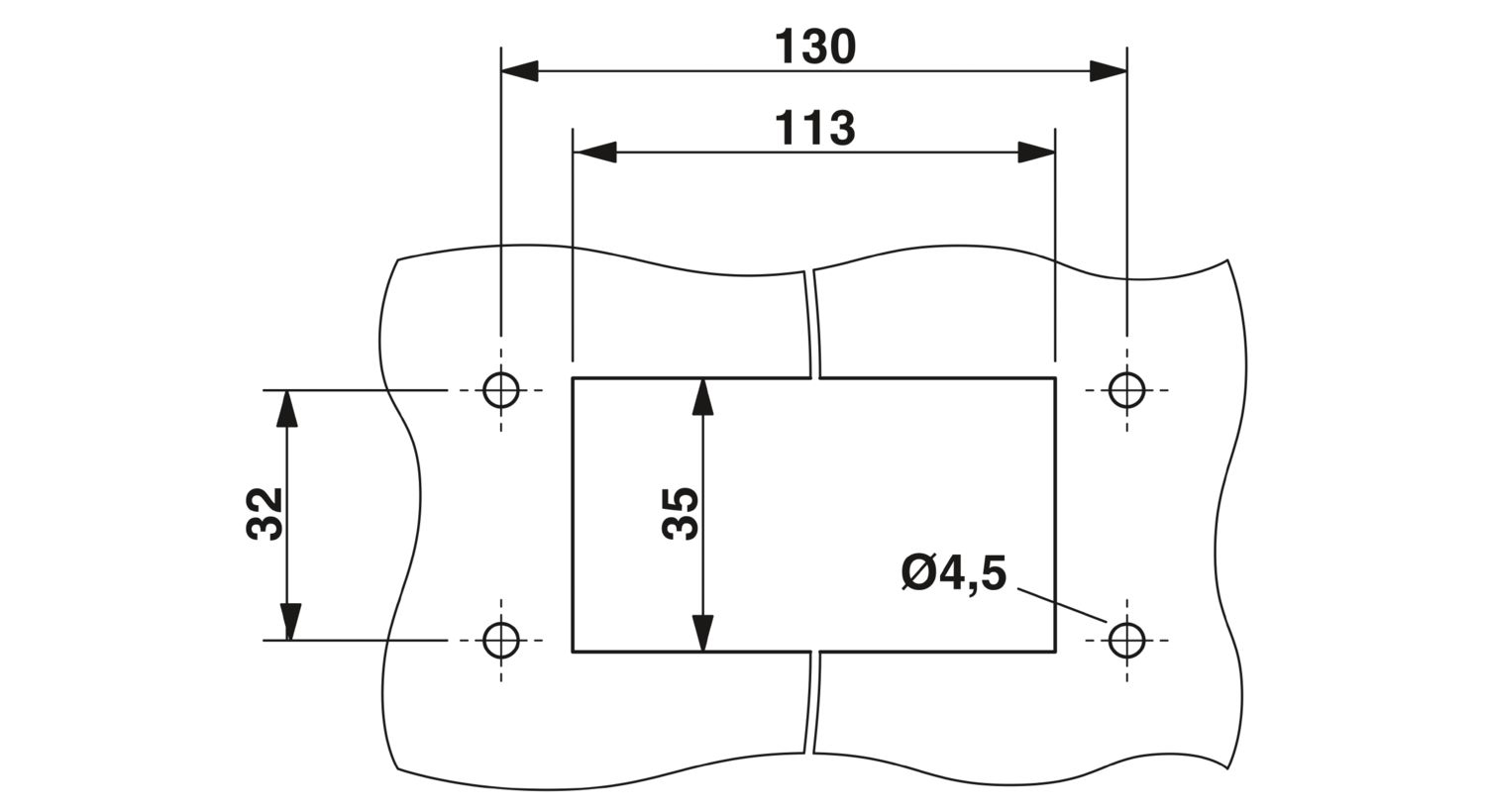 Крепежные винты не входят в комплект поставки. Максимальная ширина стенного выреза может достигать 51 мм (вместо 35 мм промышленного штекерного соединителя).