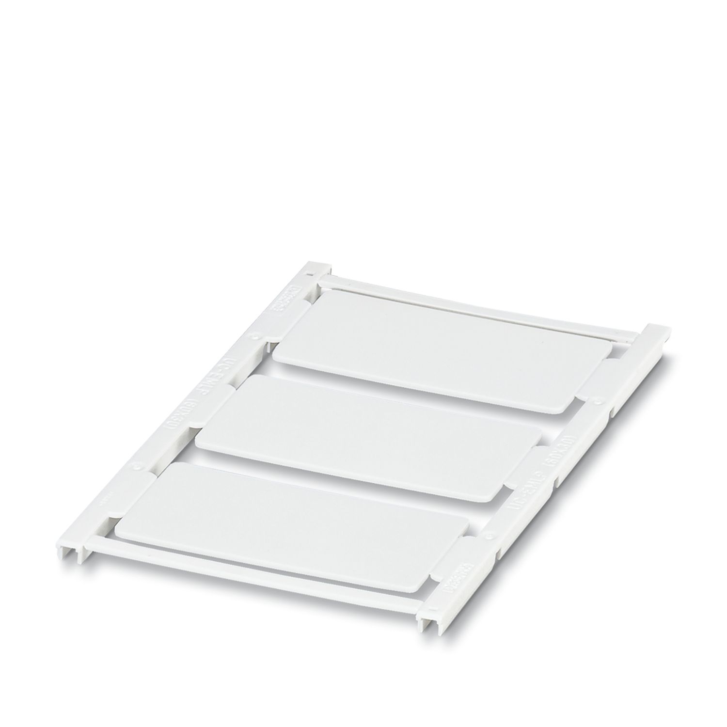 Пластиковая табличка, возможен заказ: в пластинах, белый, надписи в соответствии с требованиями заказчика, тип монтажа: склеивание, высота текстового поля: 30 мм, ширина текстового поля: 60 мм