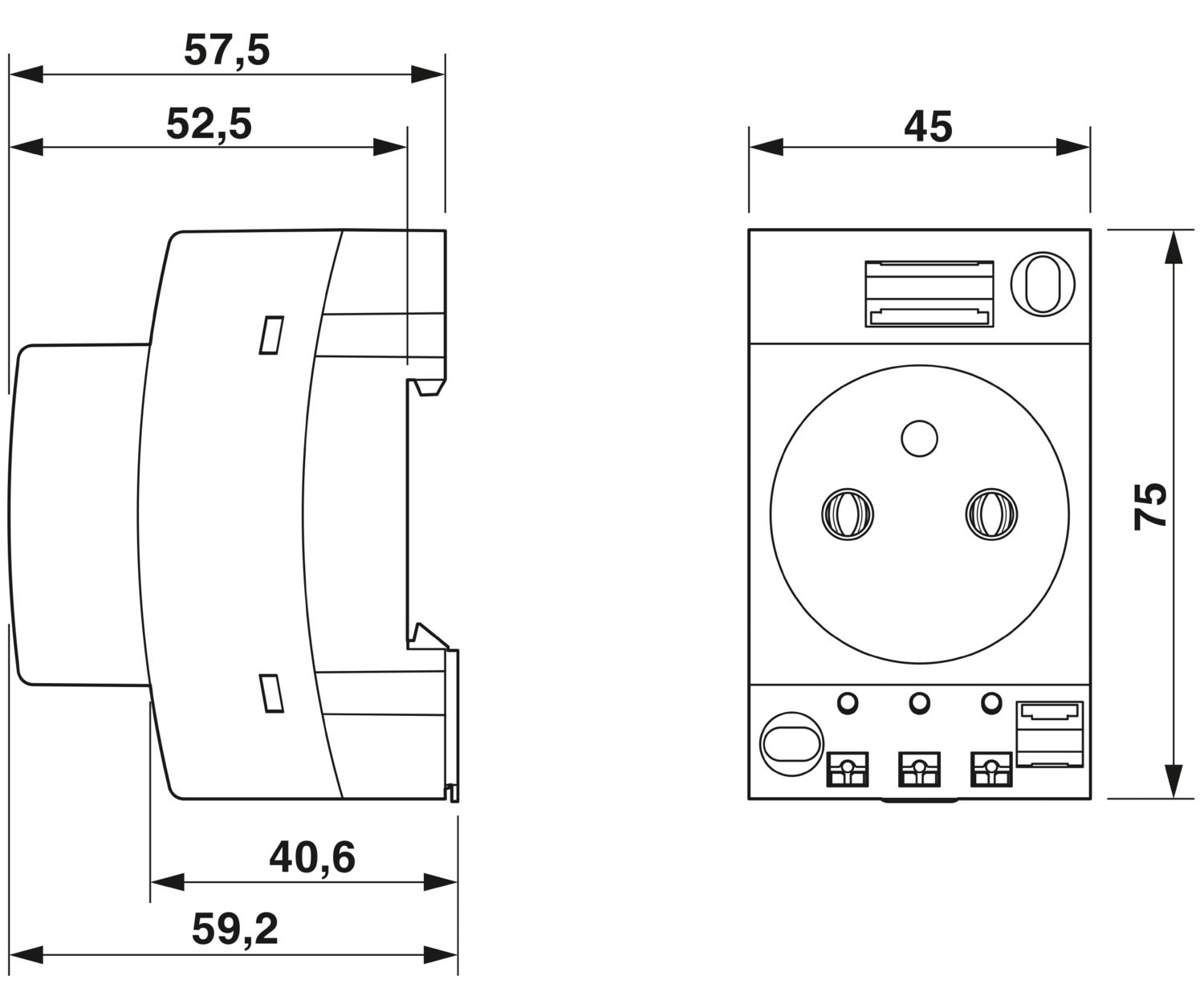 Розетка, с расширенной защитой от касания / заслонка, Схема расположения контактов тип E, тип подключения: Пружинный зажим Push-in, цвет: cерый, номинальное напряжение: 250 В AC (50 Гц), номинальный ток: 16 A, для монтажа на несущую рейку и в интерфейсе обслуживания или прямого монтажа, cтандарты/нормативные документы: NF C61-314, МЭК 60884-1, Обозначения стран: Франция