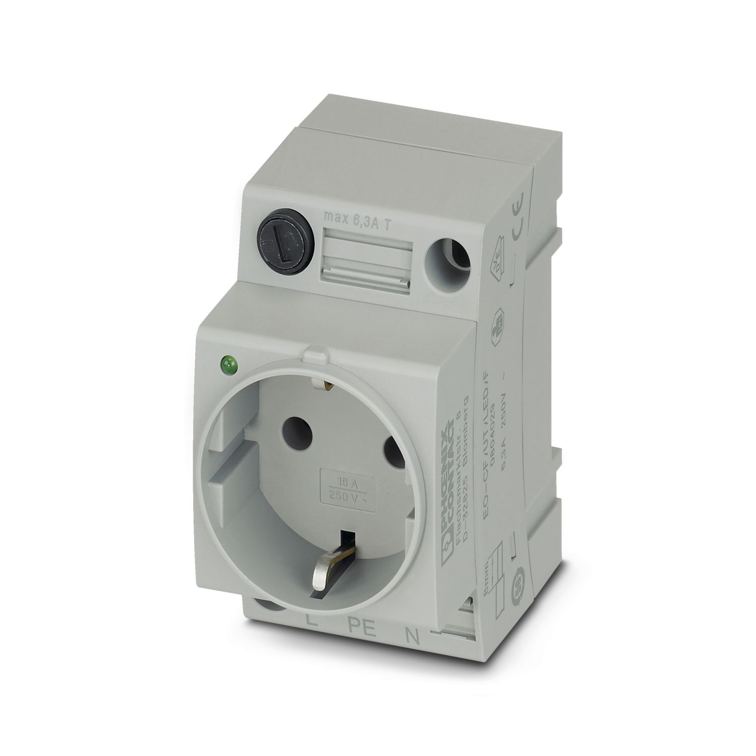 Розетка, с индикатором, предохранитель 5 x 20 мм, 6,3 A, Схема расположения контактов тип CF, тип подключения: Винтовые зажимы, цвет: cерый, номинальное напряжение: 250 В AC (50 Гц), номинальный ток: 6 A, для монтажа на несущую рейку и в интерфейсе обслуживания или прямого монтажа, cтандарты/нормативные документы: VDE 0620-1, МЭК 60884-1, Обозначения стран: Германия