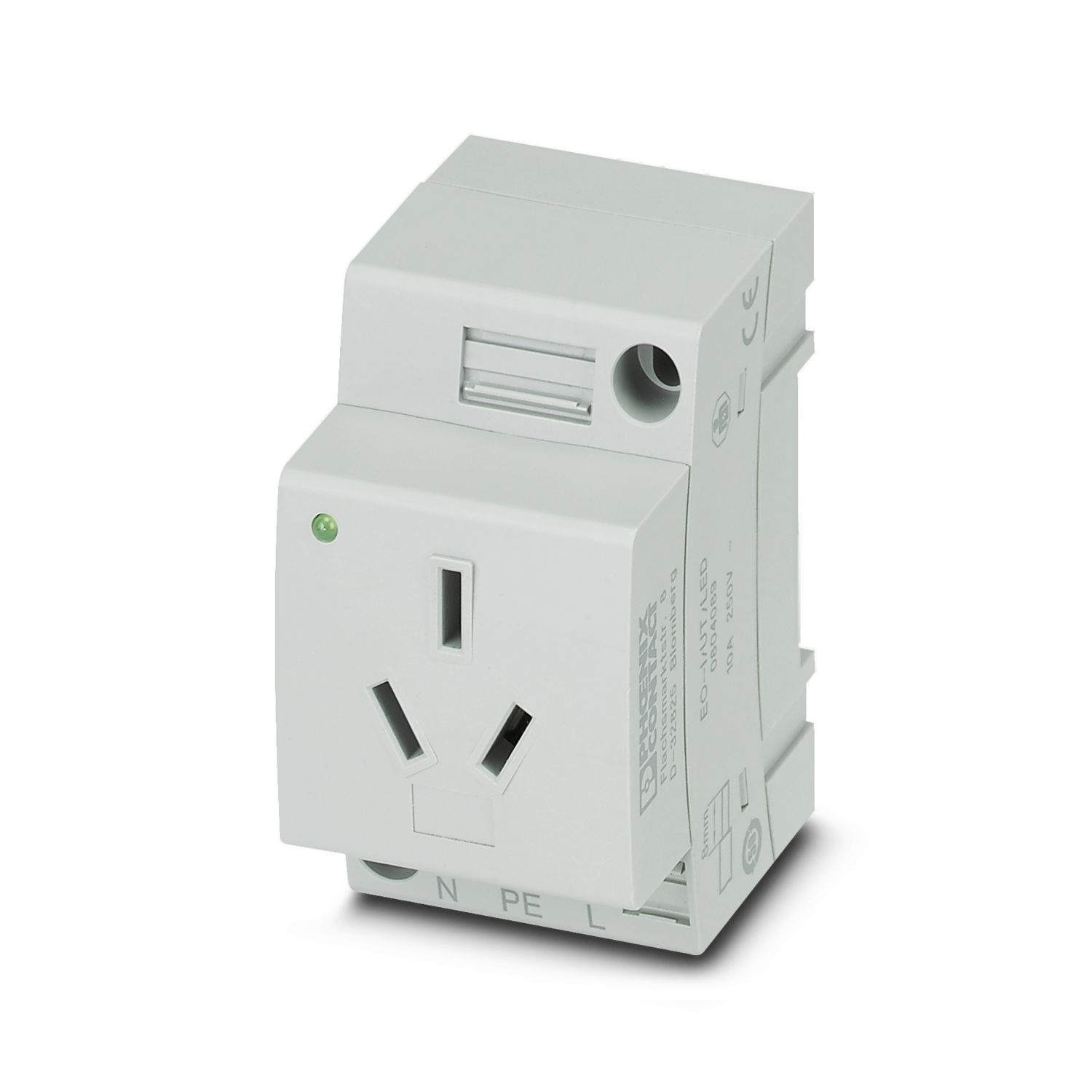 Розетка, cо световым индикатором, Схема расположения контактов тип I, тип подключения: Винтовые зажимы, цвет: cерый, номинальное напряжение: 250 В AC (50 Гц), номинальный ток: 10 A, для монтажа на несущую рейку и в интерфейсе обслуживания или прямого монтажа, cтандарты/нормативные документы: GB 2099.1 и GB 1002, Обозначения стран: Китай