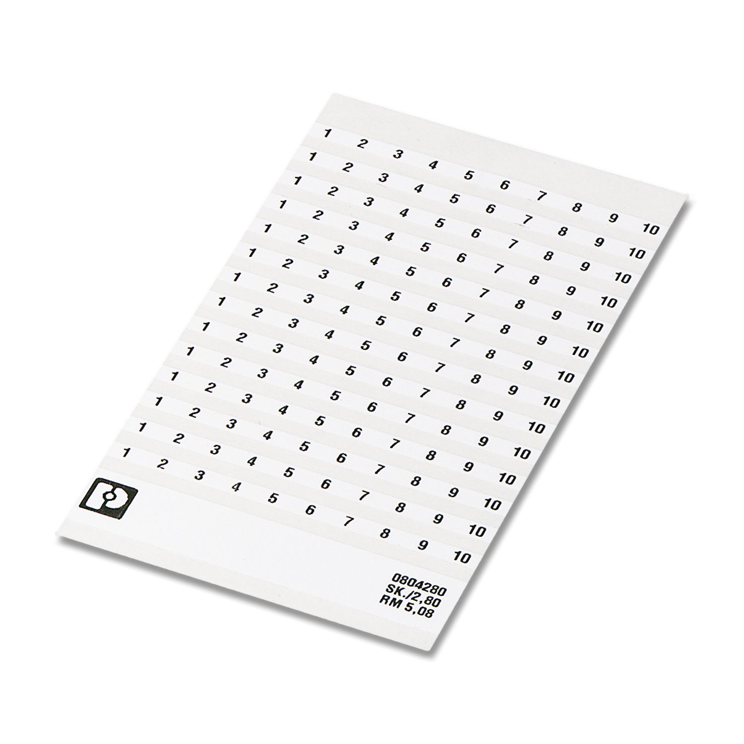 Листы с самоклеющейся маркировкой, с нанесенными вдоль полосы цифрами по порядку: 51 ... 60, Маркировочные полосы по 10 элементов каждая, по 14 одинаковых цифр десятками, белый, для клемм шириной: 5,08 мм, тип монтажа: склеивание