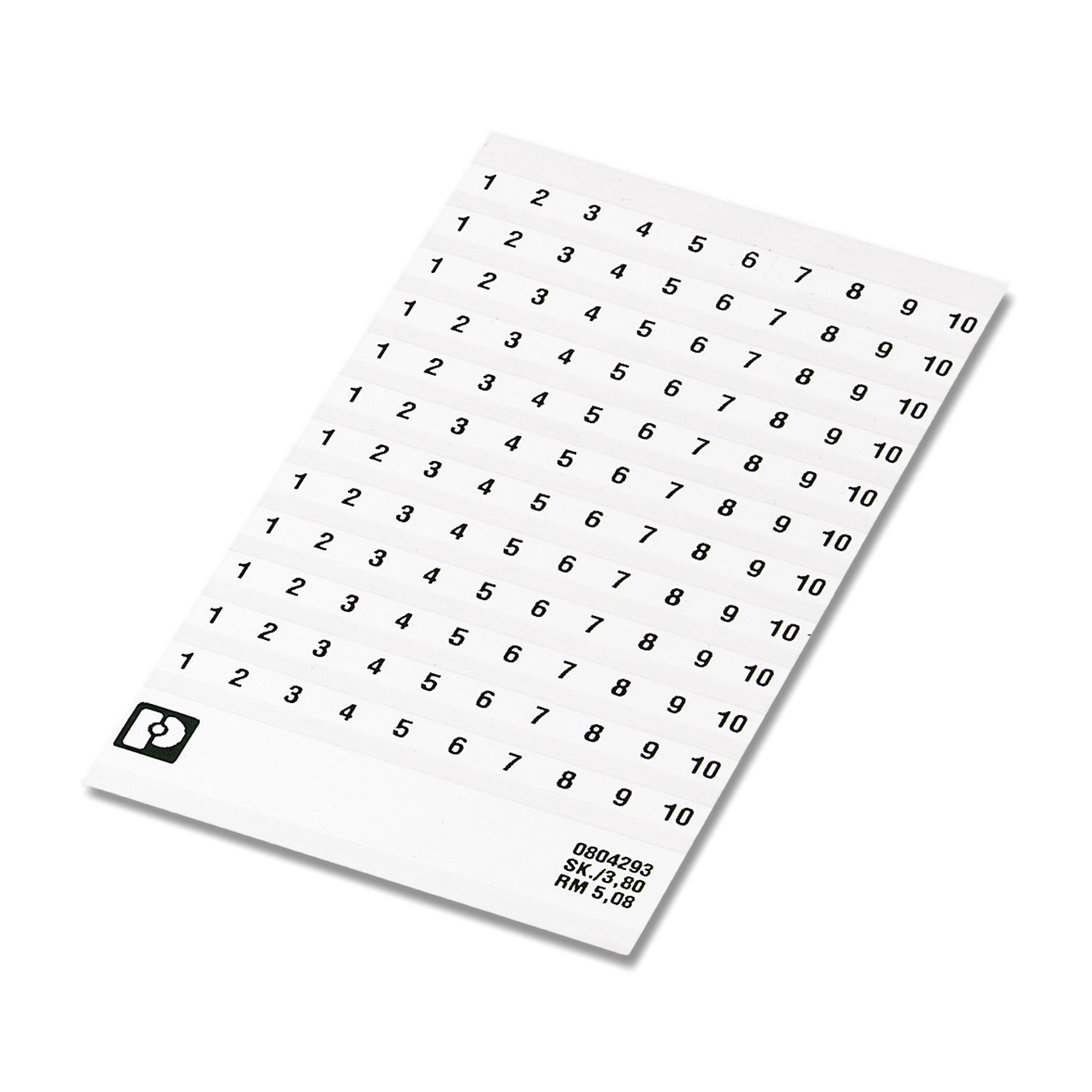 Листы с самоклеющейся маркировкой, с нанесенными вдоль полосы цифрами по порядку: 71 ... 80, Маркировочные полосы по 10 элементов каждая, по 12 одинаковых цифр десятками, белый, для клемм шириной: 5,08 мм, тип монтажа: склеивание