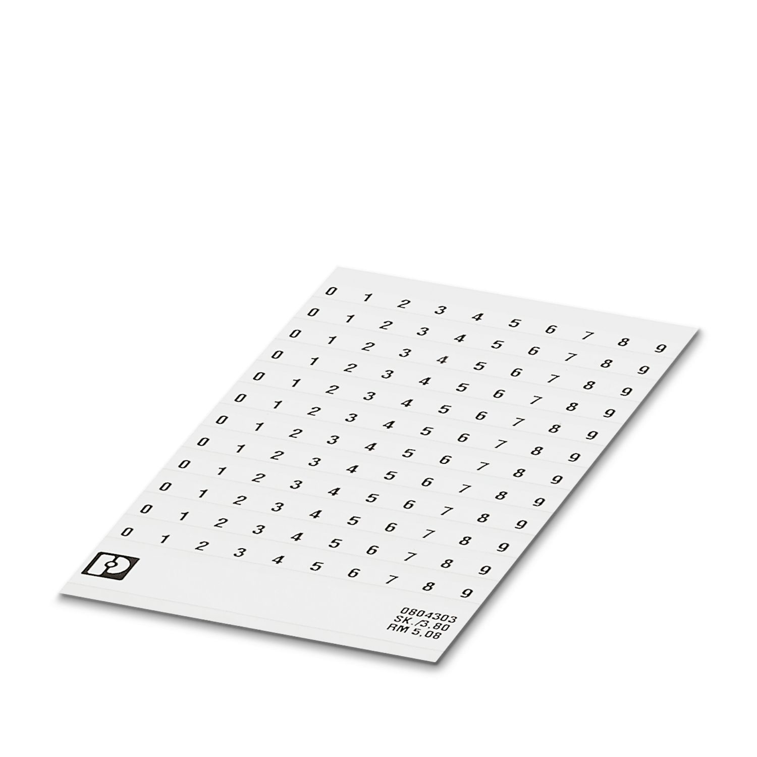 Маркировочный лист, Лист, белый, с маркировкой, горизонтально: нумерация по порядку 0 ... 9, тип монтажа: склеивание, для клемм шириной: 5,08 мм, Количество отдельных табличек: 12, высота текстового поля: 3,8 мм, ширина текстового поля: 5,08 мм