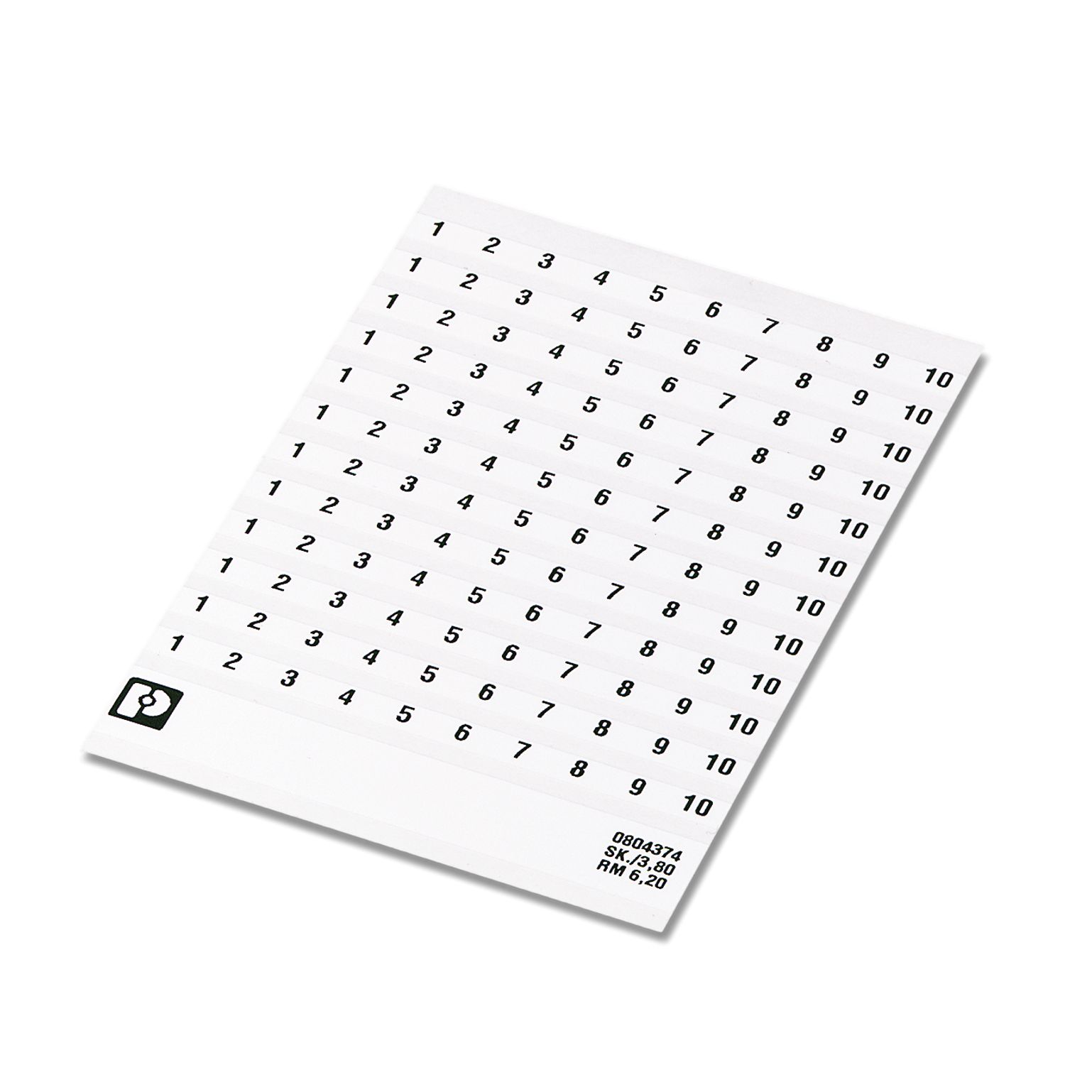 Листы с самоклеющейся маркировкой, с нанесенными вдоль полосы цифрами по порядку: 31 ... 40, Маркировочные полосы по 10 элементов каждая, по 12 одинаковых цифр десятками, белый, для клемм шириной: 6,2 мм, тип монтажа: склеивание