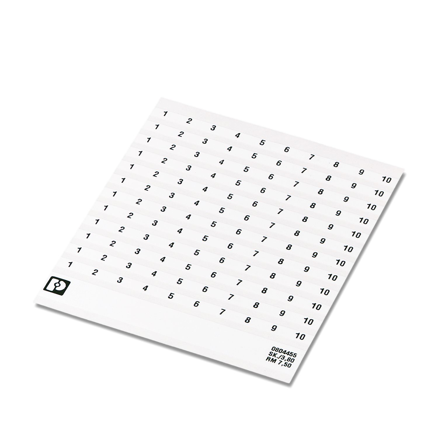 Листы с самоклеющейся маркировкой, с нанесенными цифрами по порядку: 91 ... 100, Маркировочные полосы по 10 элементов каждая, по 12 одинаковых цифр десятками, белый, для клемм шириной: 7,5 мм, тип монтажа: склеивание