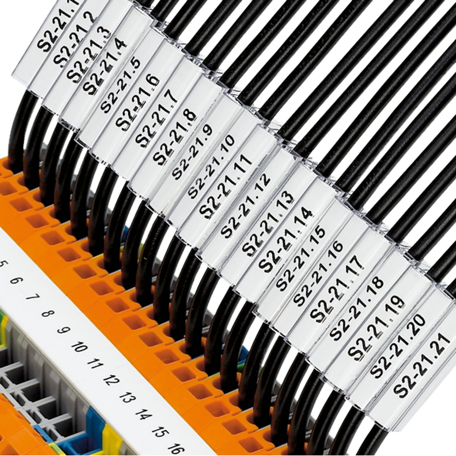 Маркировка наносится с помощью соответствующих вставных табличек UC‑WMT ..., US‑WMT ... и EMT ...|Система маркировки проводов и кабелей состоит из держателя и вставных табличек|Маркировочное кольцо PATG представляет собой закрытый несъемный держатель маркировки|Оно используется для маркировки проводов диаметром от 0,6 мм ... 50 мм