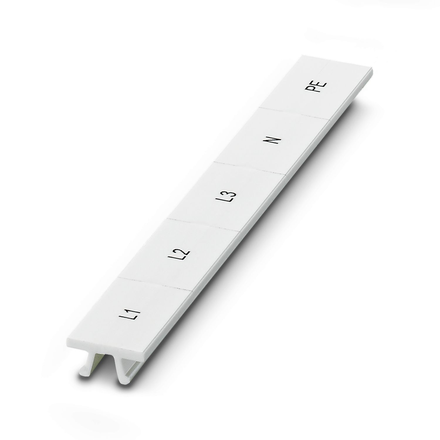 Полоса Zack, Полоса, белый, с маркировкой, надписи вдоль: L1, L2, L3, N, PE, тип монтажа: фиксация, для клемм шириной: 18 мм, Количество отдельных табличек: 5, высота текстового поля: 10,5 мм, ширина текстового поля: 17,4 мм