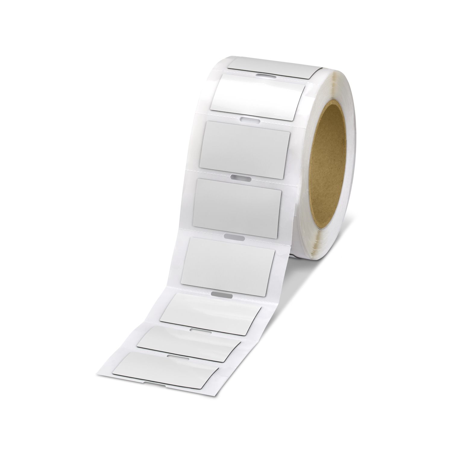 Самоклеящиеся маркеры EMLP ... идеально подходят для обозначения электрических компонентов, устройств и кнопок|Маркеры эквивалентны гравированным табличкам, они имеют высококачественный внешний вид|В комбинации с подходящей красящей лентой нанесенные надписи отличаются высокой стойкостью к растворителям и механическим воздействиям|Нанесение надписей: Phoenix Contact наносит надписи на все маркеры EMLP ... индивидуально по вашему выбору