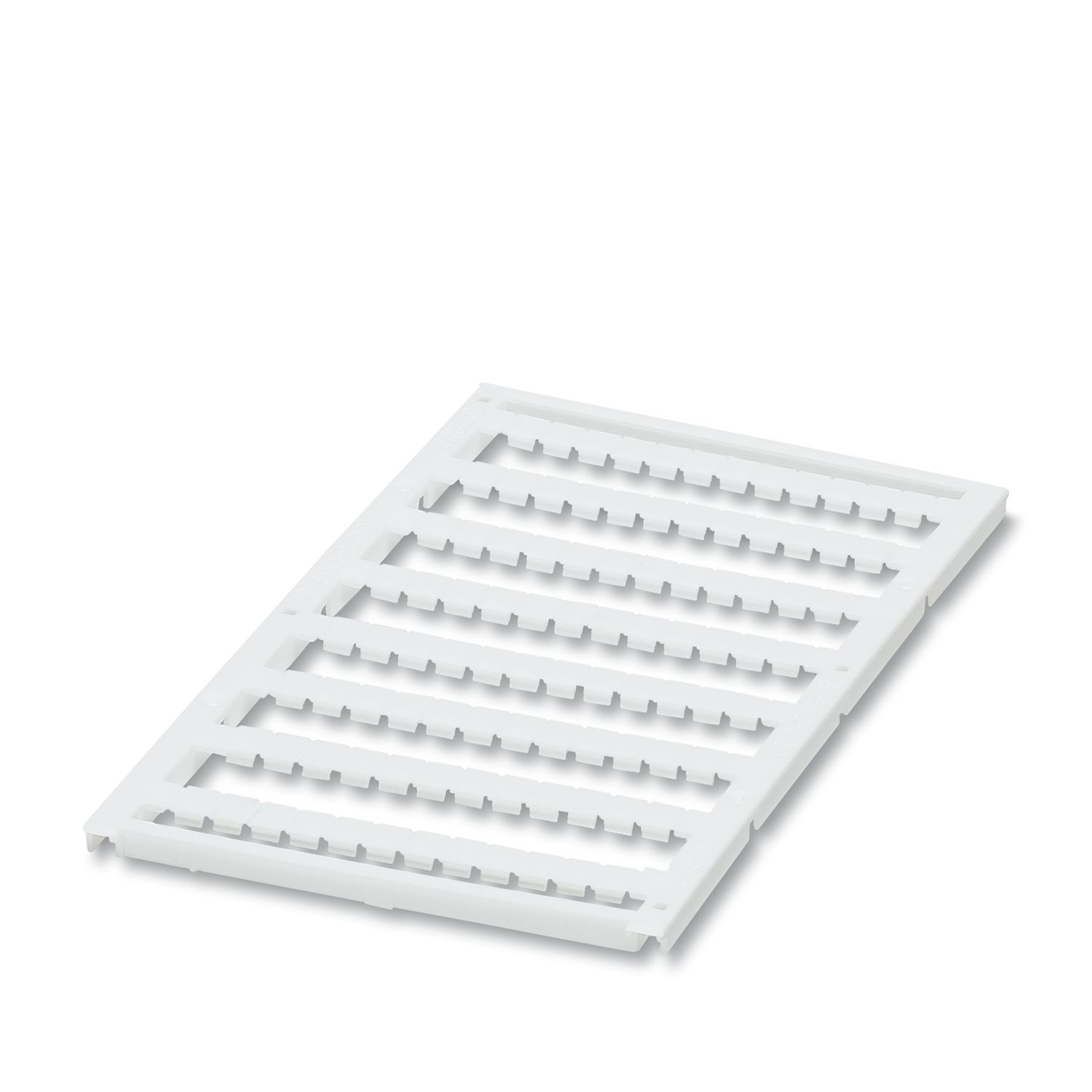 Маркировка для клеммных модулей, возможен заказ: в пластинах, белый, надписи в соответствии с требованиями заказчика, тип монтажа: крепление в плоских пазах для табличек, для клемм шириной: 5,2 мм, Количество отдельных табличек: 96, высота текстового поля: 5,2 мм, ширина текстового поля: 4,45 мм