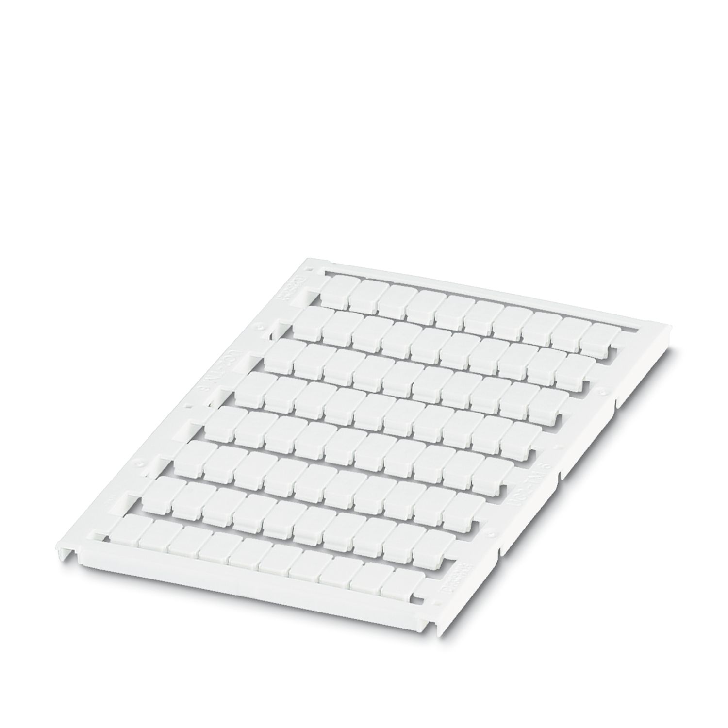 Маркировка для клеммных модулей, возможен заказ: в пластинах, белый, надписи в соответствии с требованиями заказчика, тип монтажа: крепление в высоких пазах для табличек, для клемм шириной: 6,2 мм, Количество отдельных табличек: 80, высота текстового поля: 8,75 мм, ширина текстового поля: 5,45 мм