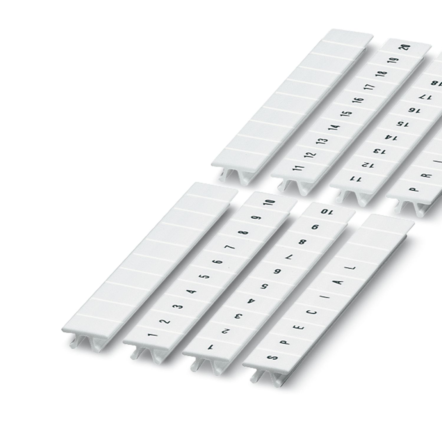 Полоса Zack, возможен заказ: в лентах, белый, надписи в соответствии с требованиями заказчика, тип монтажа: крепление в высоких пазах для табличек, для клемм шириной: 7,5 мм, Количество отдельных табличек: 10, высота текстового поля: 7,4 мм, ширина текстового поля: 10,5 мм