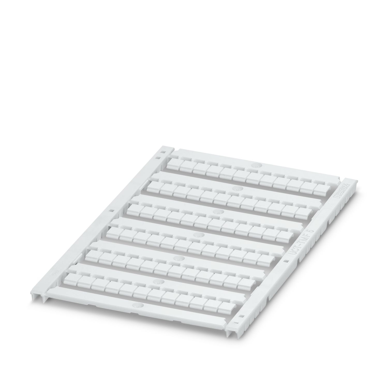 Маркировка серии UniCard UCT-TM... предлагает маркеры для изделий Phoenix Contact с высоким и плоским пазом для маркировочных планок, например, клеммных блоков|На маркеры в виде унифицированных пластин наносится маркировка простым, точным и быстрым способом при помощи карточного принтера|Пластины имеют дополнительное место для размещения информации по проекту или функционального текста, который может помочь во время монтажа|Маркировочные полосы, состоящие из нескольких частей, просто устанавливаются и в случае необходимости легко отделяются|Услуги по нанесению маркировки: Phoenix Contact наносит надписи на любые маркеры UniCard в соответствии с требованиями заказчика