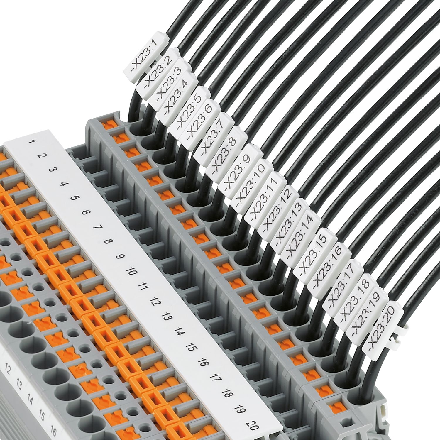 Серия маркировки UniCard UCT-WMS ... включает в себя маркеры с отверстиями для провода|Надписи на маркеры в виде стандартных пластин легко, точно и быстро наносятся с помощью принтеров THERMOMARK CARD и BLUEMARK LED|На пластинах имеется место для описания функций|Маркеры разрешают нанесение надписи в несколько строк|Их формат автоматически обеспечивает точную распечатку в соответствии с положением