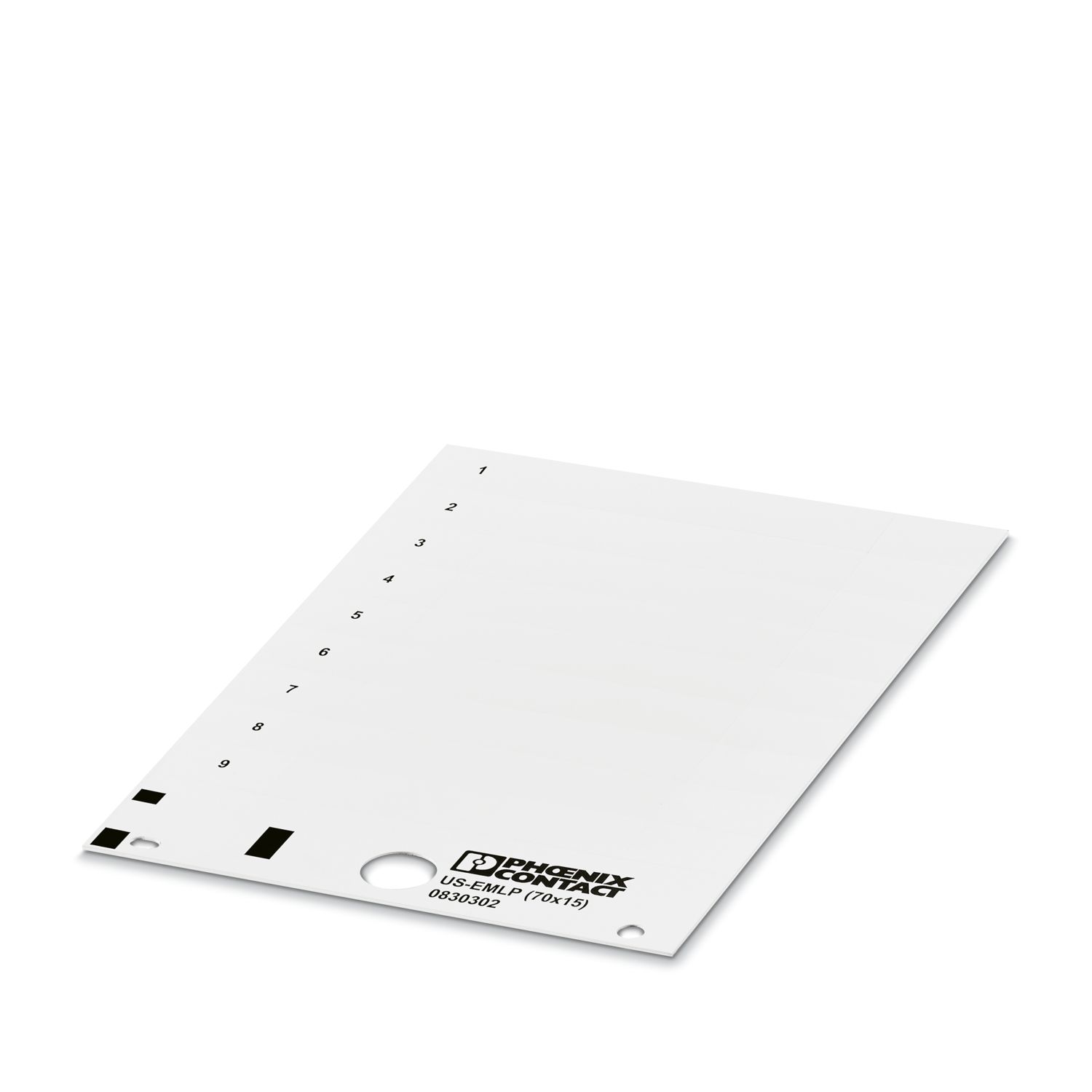 Класс воспламеняемости ПВХ соответствует V0 согласно UL 94|Маркеры в виде стандартных карт легко и быстро маркируются с помощью недорогих маркировочных элементов THERMOMARK CARD|Предварительно отштампованные маркеры и этикетки легко отделяются и просто монтируются|На пластинах имеется место для описания функций|Серия маркировочных элементов UniSheet US-EMLP ... включает самоклеющиеся маркеры для оборудования с высокой адгезией