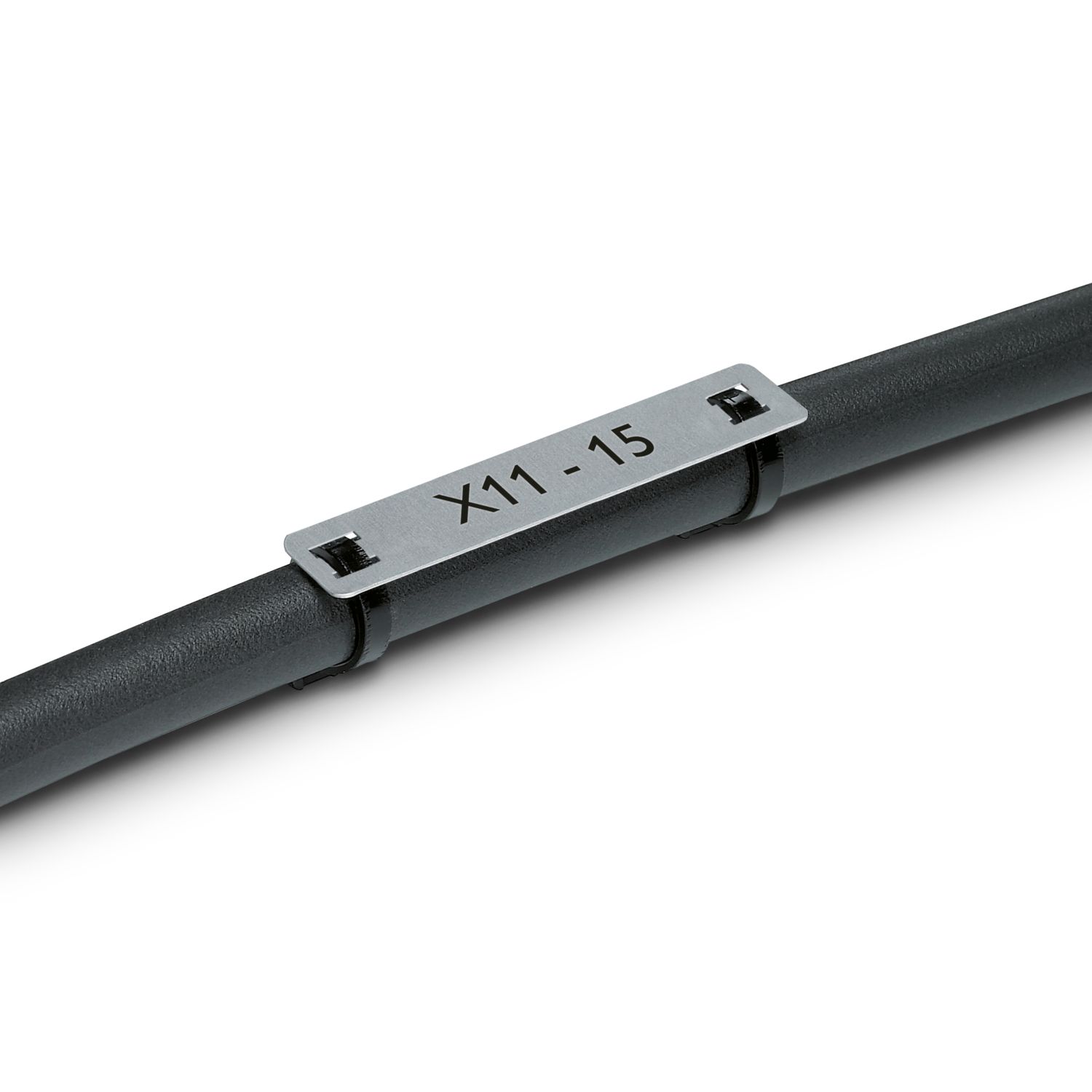 Алюминиевый элемент маркировки кабеля, монтаж при помощи кабельных стяжек|Презентабельный внешний вид|Обозначения из металла, с высокой прочностью при небольшом весе|Увеличенный срок службы благодаря декоративной анодированной поверхности|Подходит для нанесения крупноразмерной маркировки на проводники и кабели диаметром > 2,9 мм