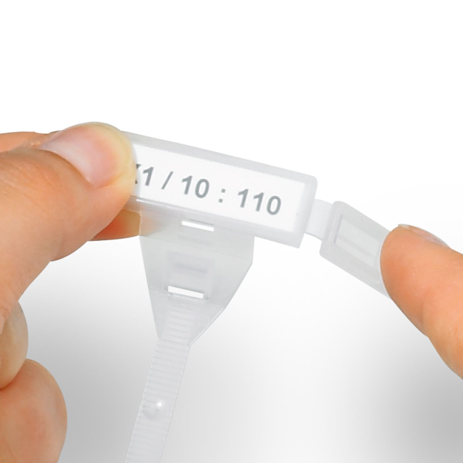 Пластиковая маркировка для кабелей для вставных табличек, закрепляемая с помощью кабельной стяжки|Пластмассовая кабельная маркировка для обозначения и стягивания проводников и кабелей, прокладываемых внутри помещения|Они имеют специальные проушины для крепления кабельными стяжками|Надписи наносятся на вставные таблички, которые для предотвращения загрязнения закрываются прозрачными крышками