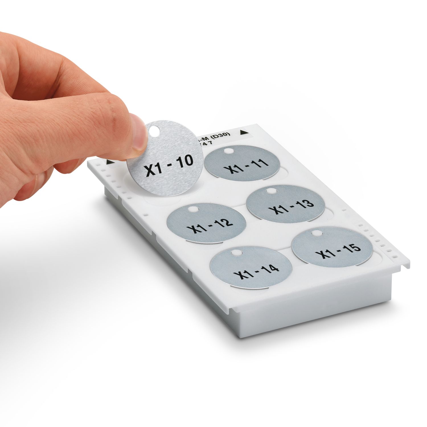Держатель маркировки кабеля, Алюминиевая табличка, алюминиевый, без маркировки, маркируется с помощью: BLUEMARK E.CARD, BLUEMARK ID COLOR, BLUEMARK ID, BLUEMARK CLED, тип монтажа: Монтаж кабельной стяжкой, диаметр кабеля: > 2,4 мм, диаметр: 30 мм, Количество отдельных табличек: 1, высота текстового поля: 13 мм, ширина текстового поля: 26 мм