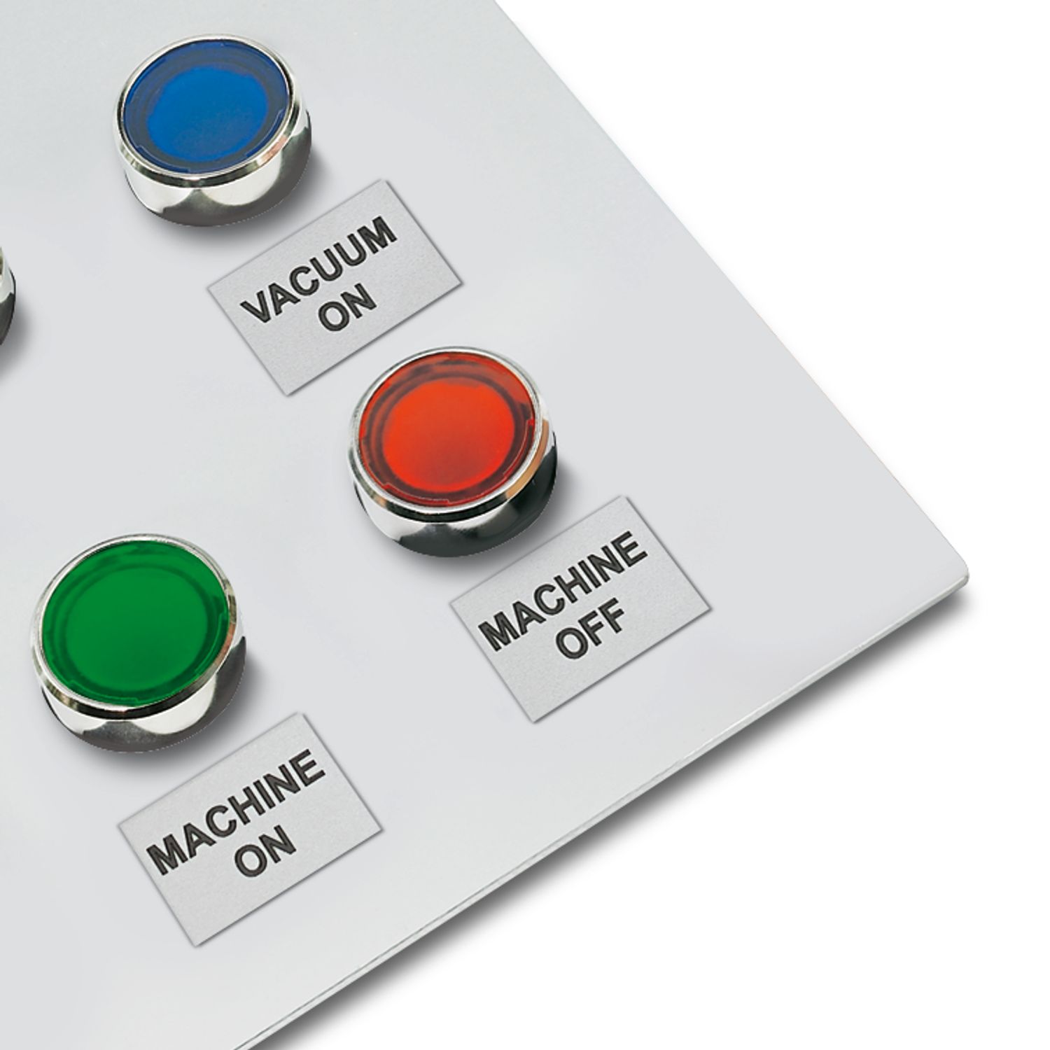 Наклеиваемая маркировка оборудования|Подготовленные маркеры устройств в стандартном формате для лазерной печати, рассчитанные на оптимальное позиционирование в маркировочном устройстве|Высокая контрастность благодаря серебристому верхнему слою с черной маркировкой