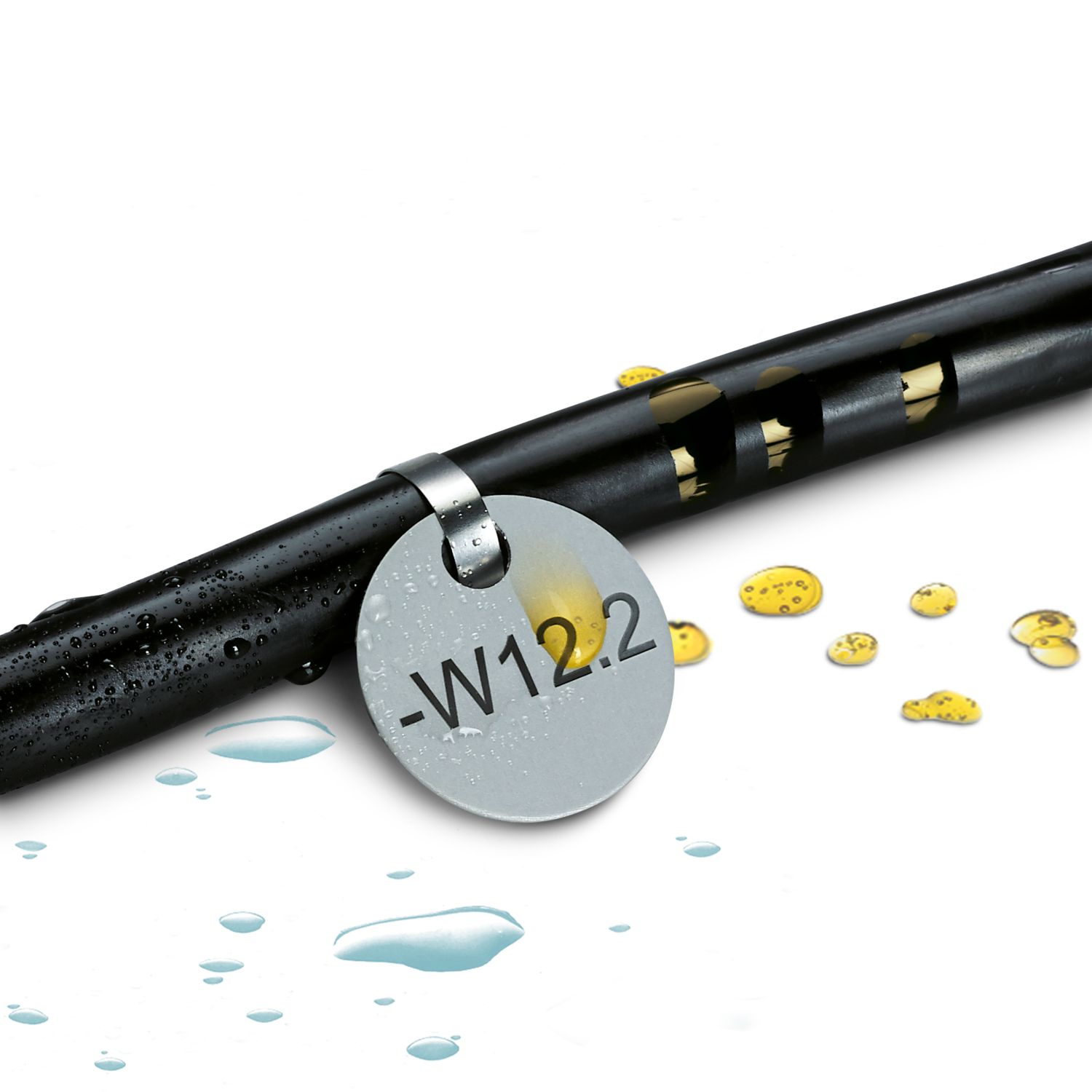 Алюминиевый элемент маркировки кабеля, монтаж при помощи кабельных стяжек|Подходит для нанесения крупноразмерной маркировки на проводники и кабели диаметром > 2,9 мм|Обозначения из металла, с высокой прочностью при небольшом весе|Увеличенный срок службы благодаря декоративной анодированной поверхности
