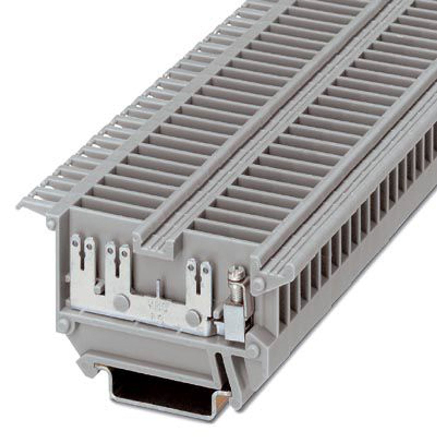 Проходные клеммы, номинальное напряжение: 800 В, номинальный ток: 32 A, 1. ярус, подключение справа, тип подключения: Винтовые зажимы, cечение: 0,2 мм2 - 4 мм2, 1. ярус, тип подключения: Подкл. плоского штекера, монтаж: NS 35/7,5, NS 35/15, цвет: cерый