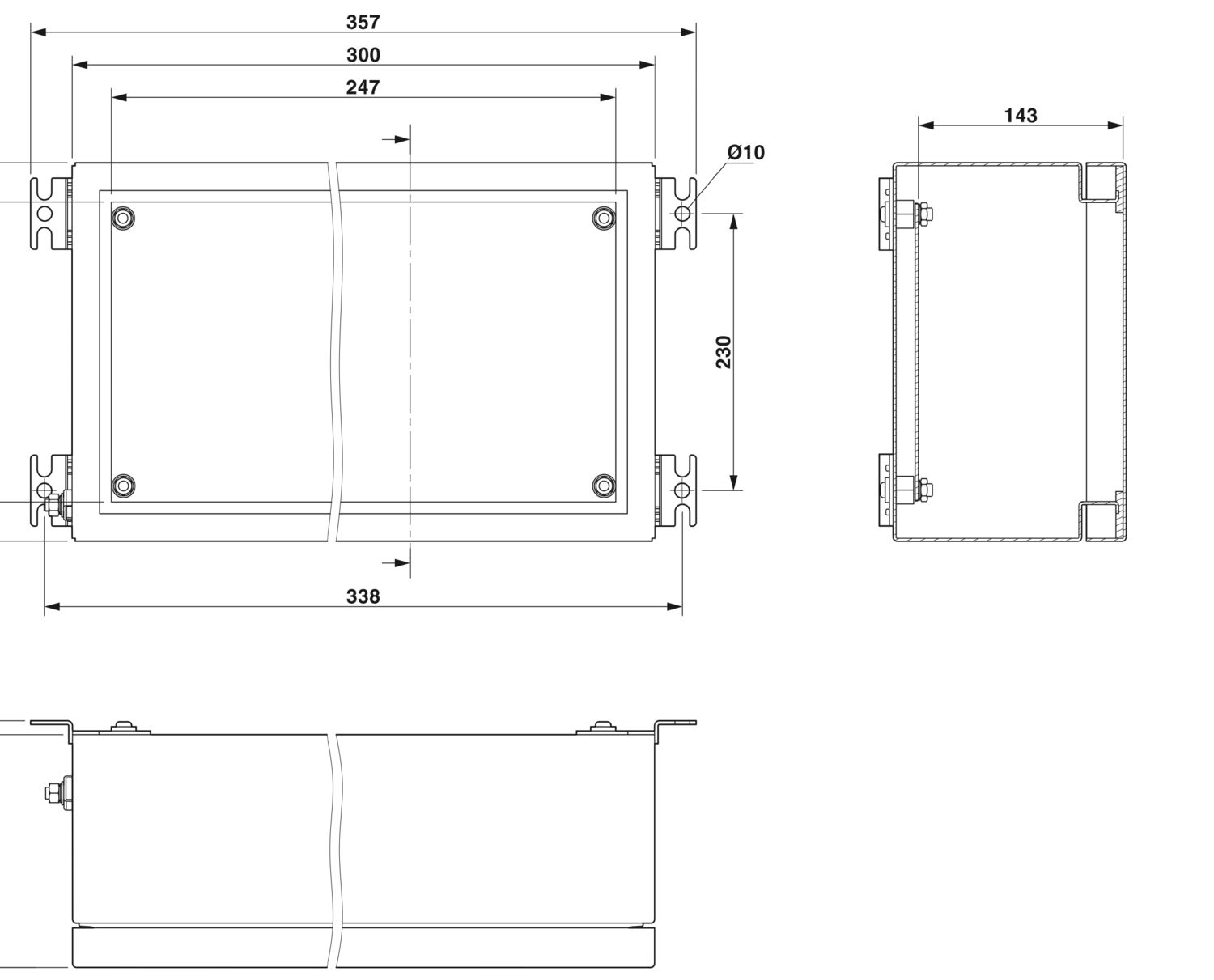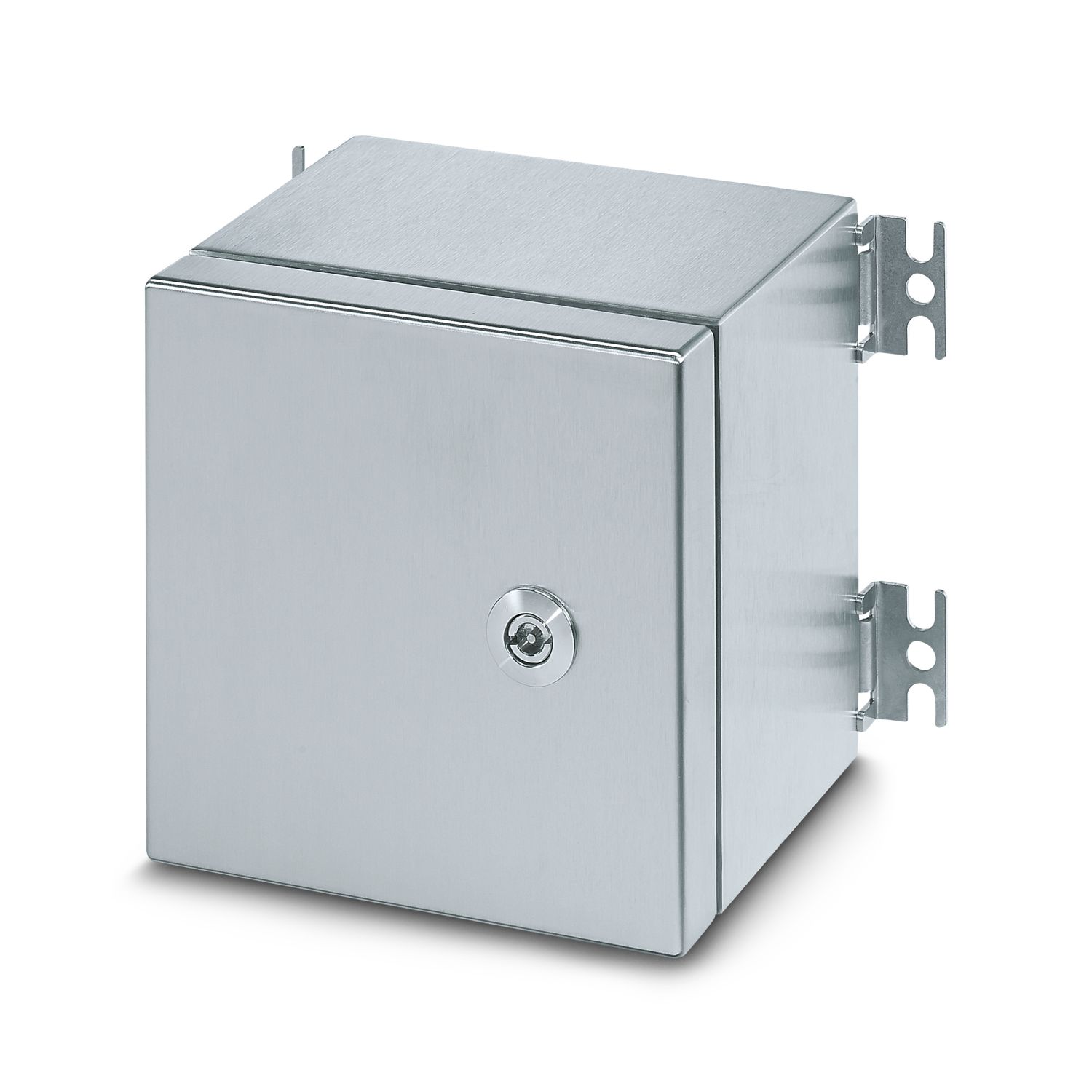 Пустой корпус, материал: Высококачественная сталь 316L / 1.4404, поверхностное сопротивление: сатинированный, cеребристый, 300 мм x 300 мм x 160 мм, тип замка: Дверь со сменным шарниром, комплект поставки - ATD: Дверной шарнир с затвором на четверть оборота, Монтажная плата, ключ с двумя бородками, Крепежный кронштейн в комплекте с винтами, Штифты заземления M12, расположенные снаружи, Инструкция по монтажу, Дверной шарнир с затвором на четверть оборота