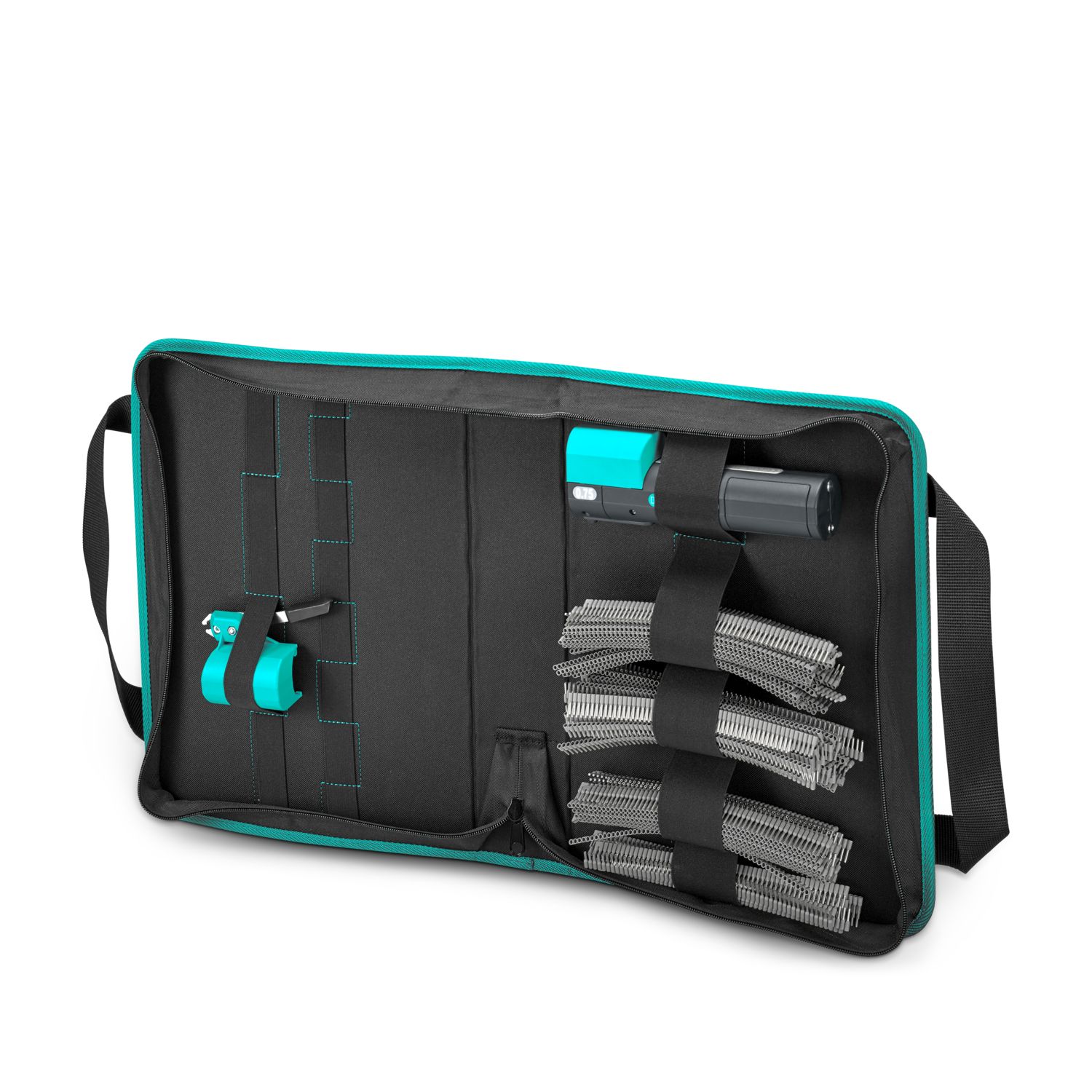 Набор состоит из: Crimphandy, включая аккумулятор, зарядное устройство, ножницы для кабеля, 2 лотка для отходов, сервисный инструмент, полосу для наконечников, прочный кейс, CRIMPHANDY CUTTER и футляр для инструмента