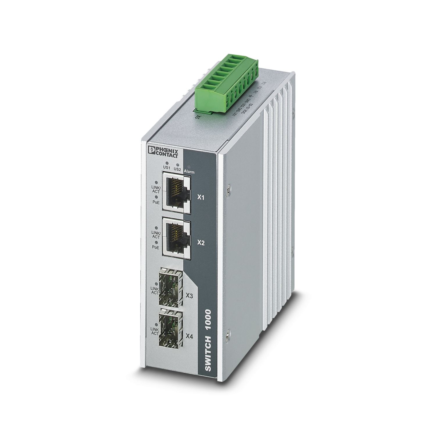 Unmanaged PoE Switch 1000 серия, 2 SFP-порты 100/1000 Мбит/с, 2 Порты RJ45-PoE 10/100/1000 Мбит/с, cтепень защиты: IP30, Температура окружающей среды (при экспл.): -40 °C ... 75 °C, Диапазон напряжения питания: 52 В DC ... 57 В DC, Расширенный диапазон температуры