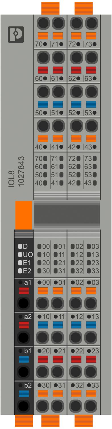 Axioline F, Ведущее устройство IO-Link, порты IO-Link Класс A: 8, тип подключения: Зажимы Push-in, cпособ подключения: 3-проводной, скорость передачи данных в локальной шине: 100 Мбит/с, cтепень защиты: IP20, с цокольным модулем шины и штекерами Axioline F