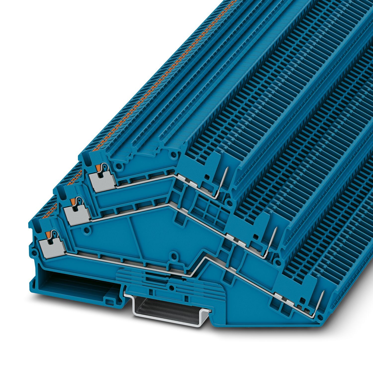 Многоярусный клеммный модуль, Ток и напряжение определяются типом вставляемого компонента., номинальное напряжение: 500 В, номинальный ток: 15 A, тип подключения: Разъемное подключение / Push-in, 1. ярус, Расчетное сечение: 1,5 мм2, cечение: 0,14 мм2 - 1,5 мм2, тип монтажа: NS 35/7,5, цвет: синий