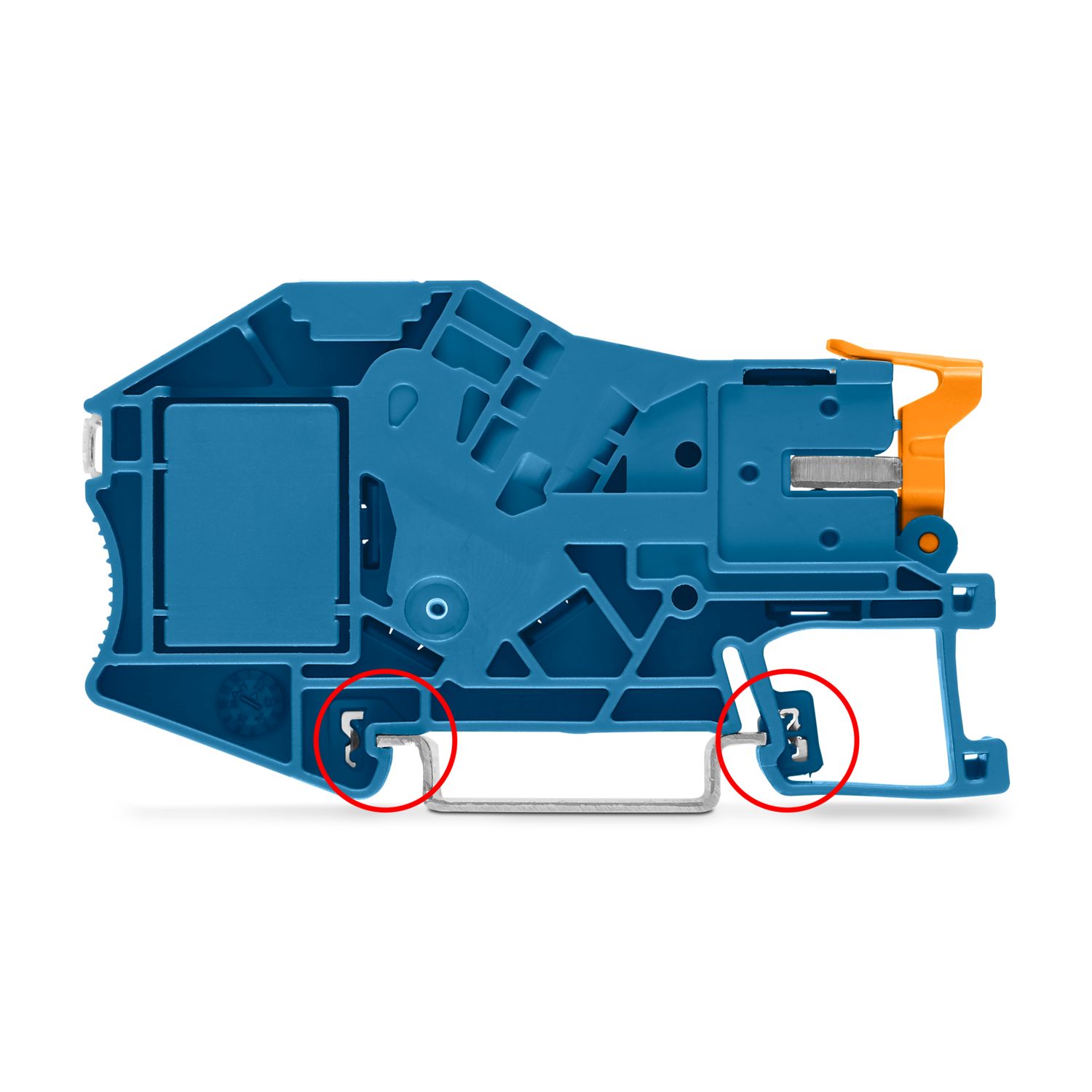 Установочная клемма, с функцией концевого держателя, номинальное напряжение: 1000 В, номинальный ток: 70 A, Зажимы Push-in, 1. ярус, Расчетное сечение: 16 мм2, cечение: 0,5 мм2 - 25 мм2, тип монтажа: NS 35/7,5, NS 35/15, цвет: синий