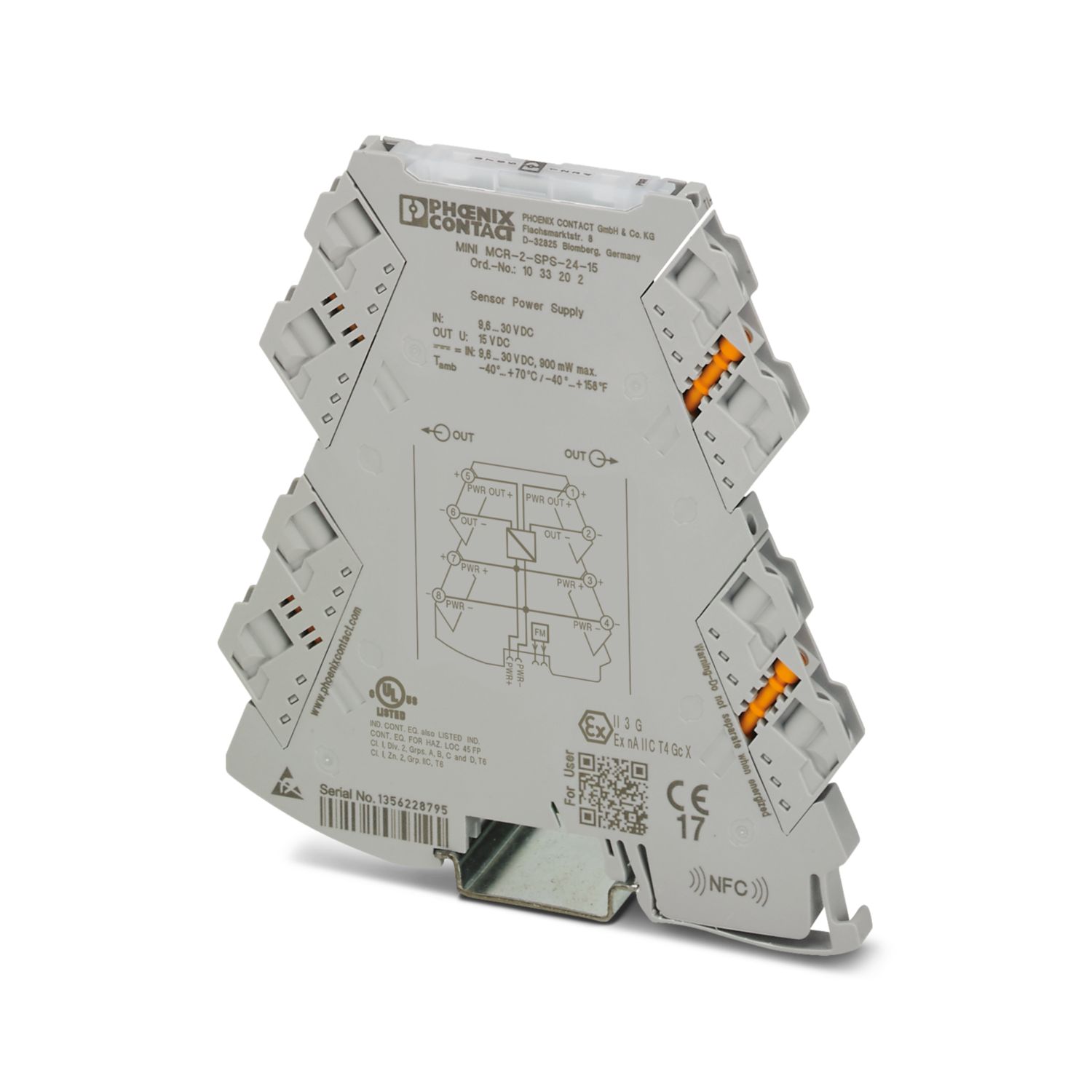 9,6 В DC ... 30 В DC (Для шунтирования питания может использоваться устанавливаемый на монтажную рейку шинный соединитель (ME 6,2 TBUS-2 1,5/5-ST-3,81 GN, артикул № 2869728), закрепляемый с помощью защелок на монтажной рейке 35 мм согласно EN 60715)