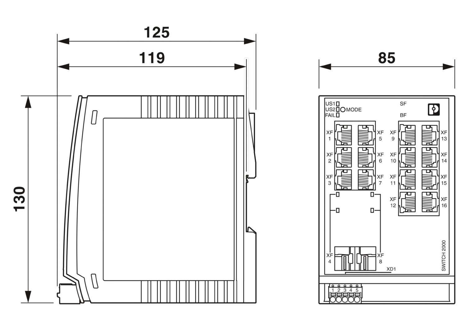 Managed Switch 2000 серия, 14 порты RJ45 10/100 Мбит/с, 2 SFP-порты 100 Мбит/с, cтепень защиты: IP20, Температура окружающей среды (при экспл.): -40 °C ... 70 °C, Диапазон напряжения питания: 12 В DC ... 57 В DC, PROFINET Conformance Class B, Расширенный диапазон температуры, Преднастройка режима PROFINET, светодиодные индикаторы состояния PROFINET, Процесс разработки сертифицирован в соответствии с МЭК 62443-4-1, Изделие сертифицировано по МЭК 62443-4-2