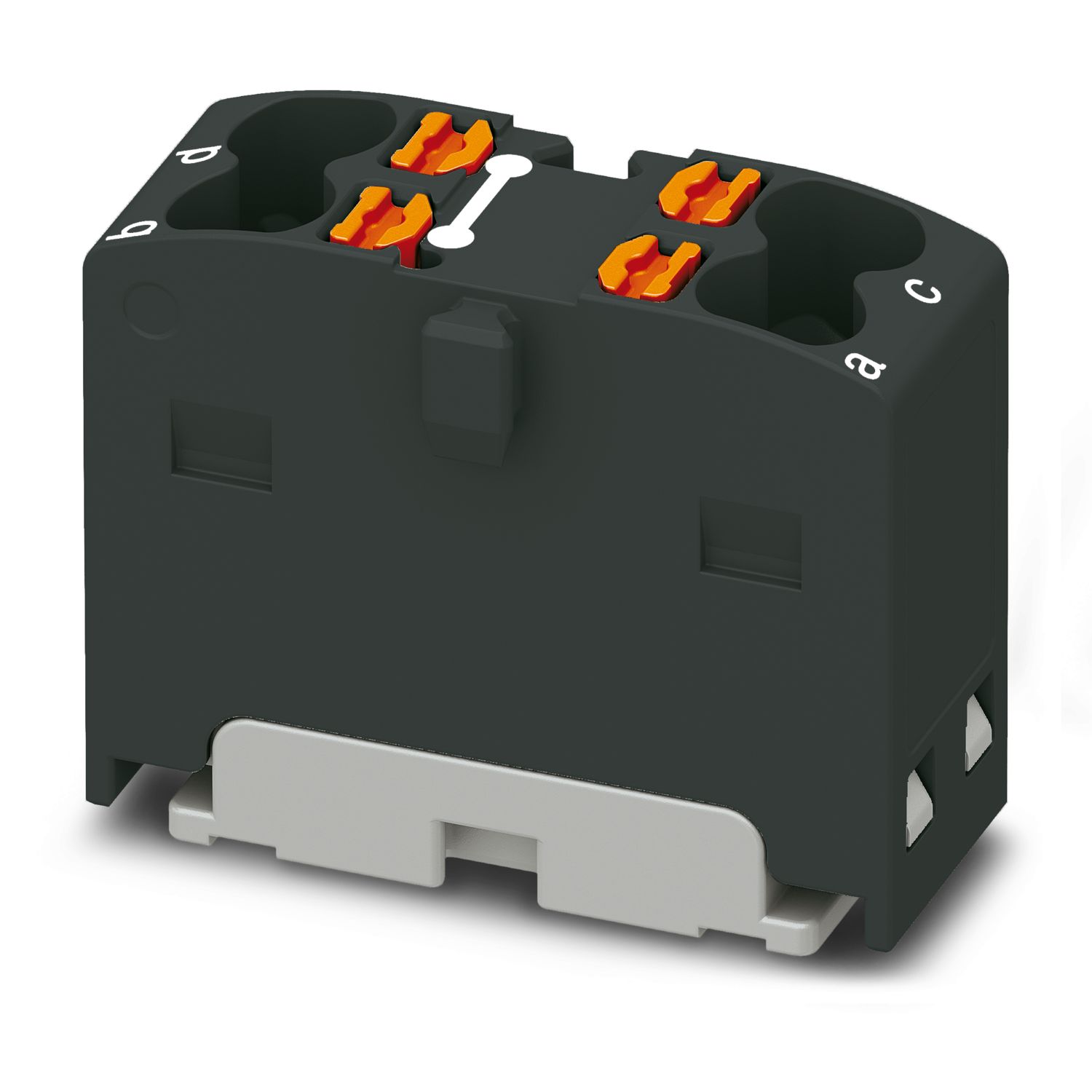 Распределительный блок, номинальное напряжение: 450 В, номинальный ток: 17,5 A, количество точек подсоединения: 4, тип подключения: Зажимы Push-in, cечение: 0,14 мм2 - 2,5 мм2, тип монтажа: крепление защелками на адаптере для монтажной рейки, Прямой монтаж при помощи фланца, Подвесной, цвет: черный
