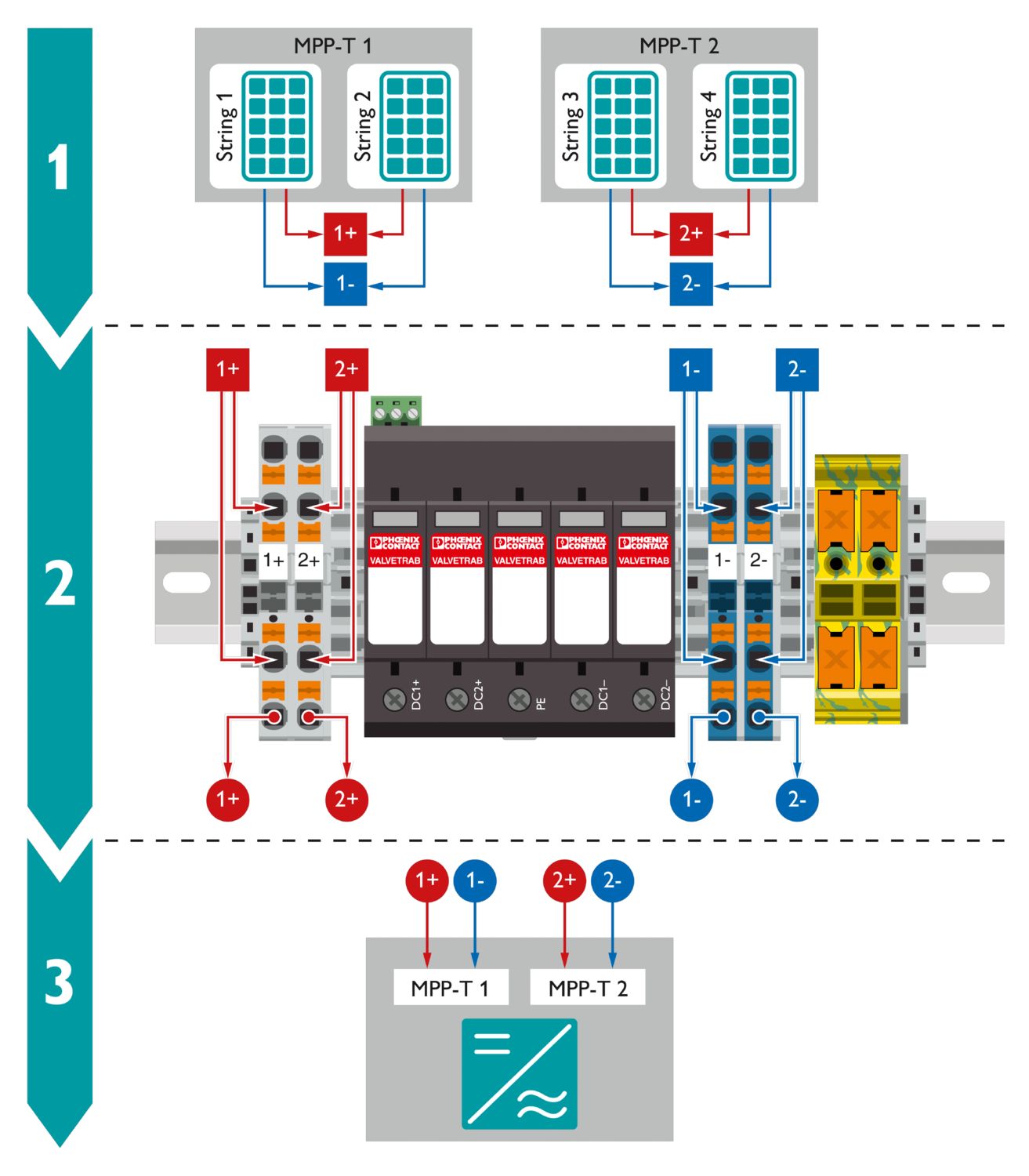 Соединительные коробки генераторов; напряжение MPP: 1000 В DC; количество цепей: 2; количество поддерживаемых устройств слежения MPP: 2; защита от перенапряжений: T2; комплектующие: без дополнительных опций; вид ввода линии: Кабельный разъем